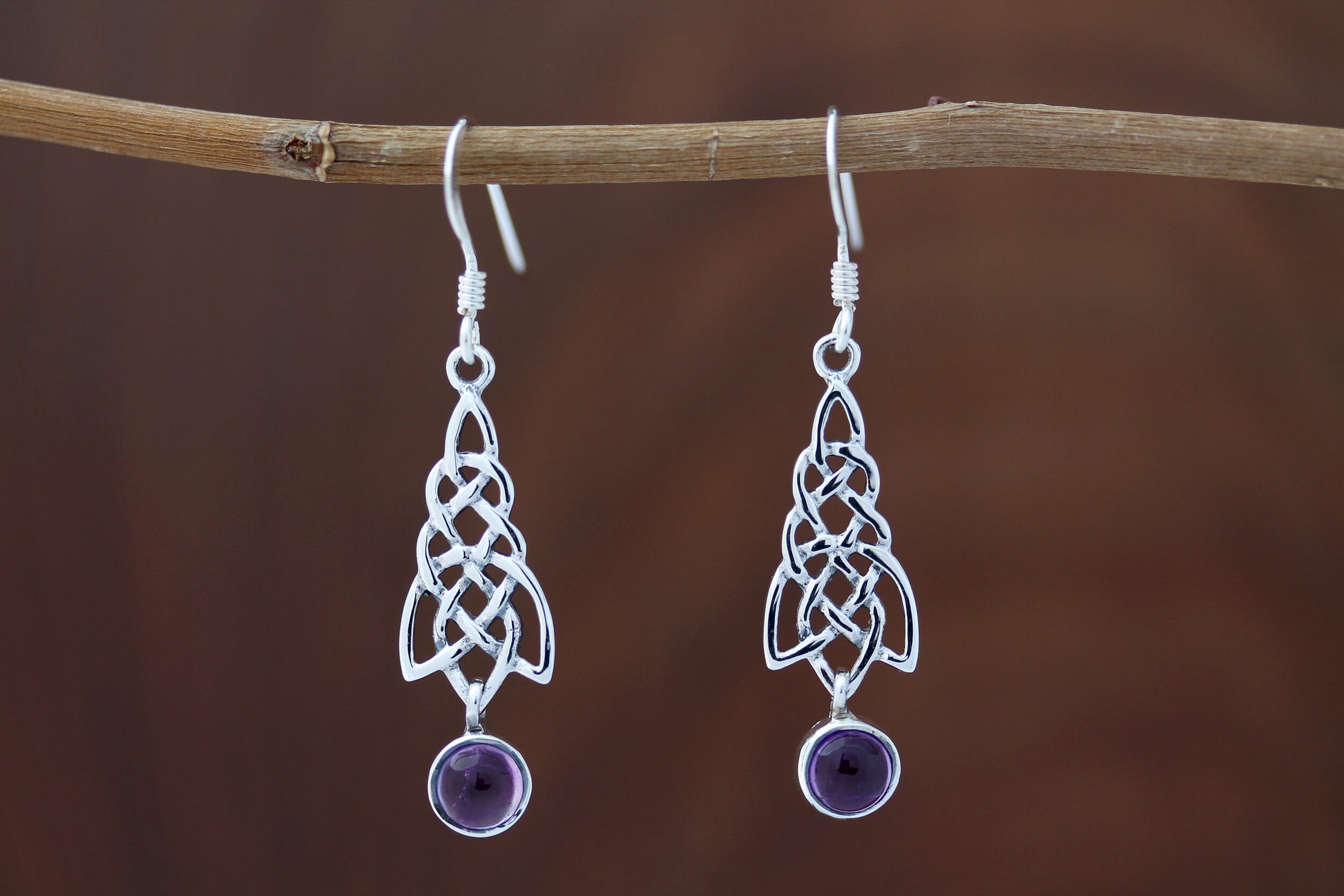 Celtic Knot earrings with Amethyst drop set in hallmarked 925 Sterling Silver.