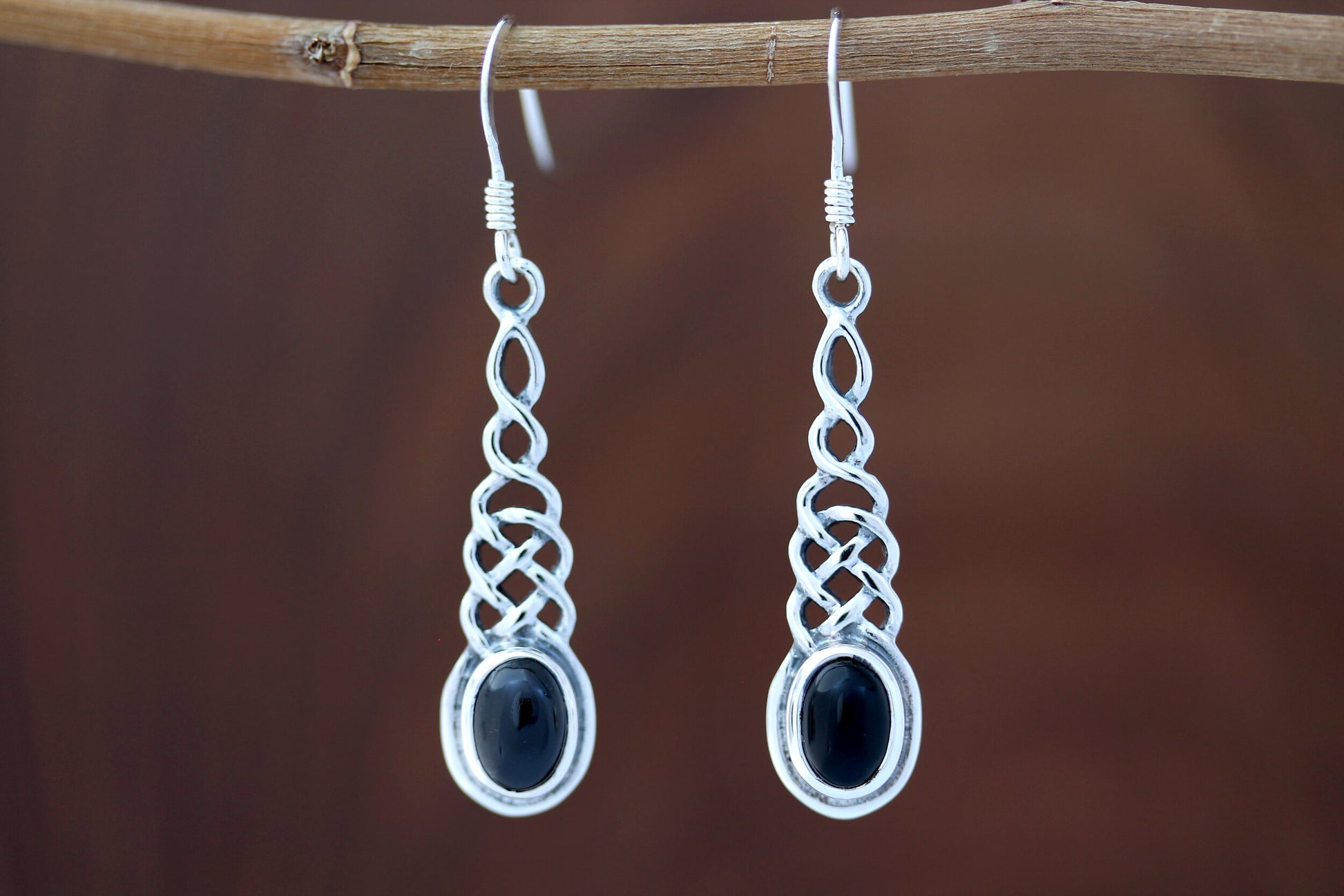 Celtic Knot Earrings - Elongated Twist with Black Onyx