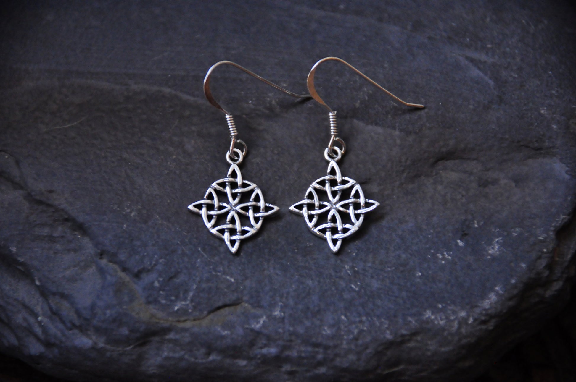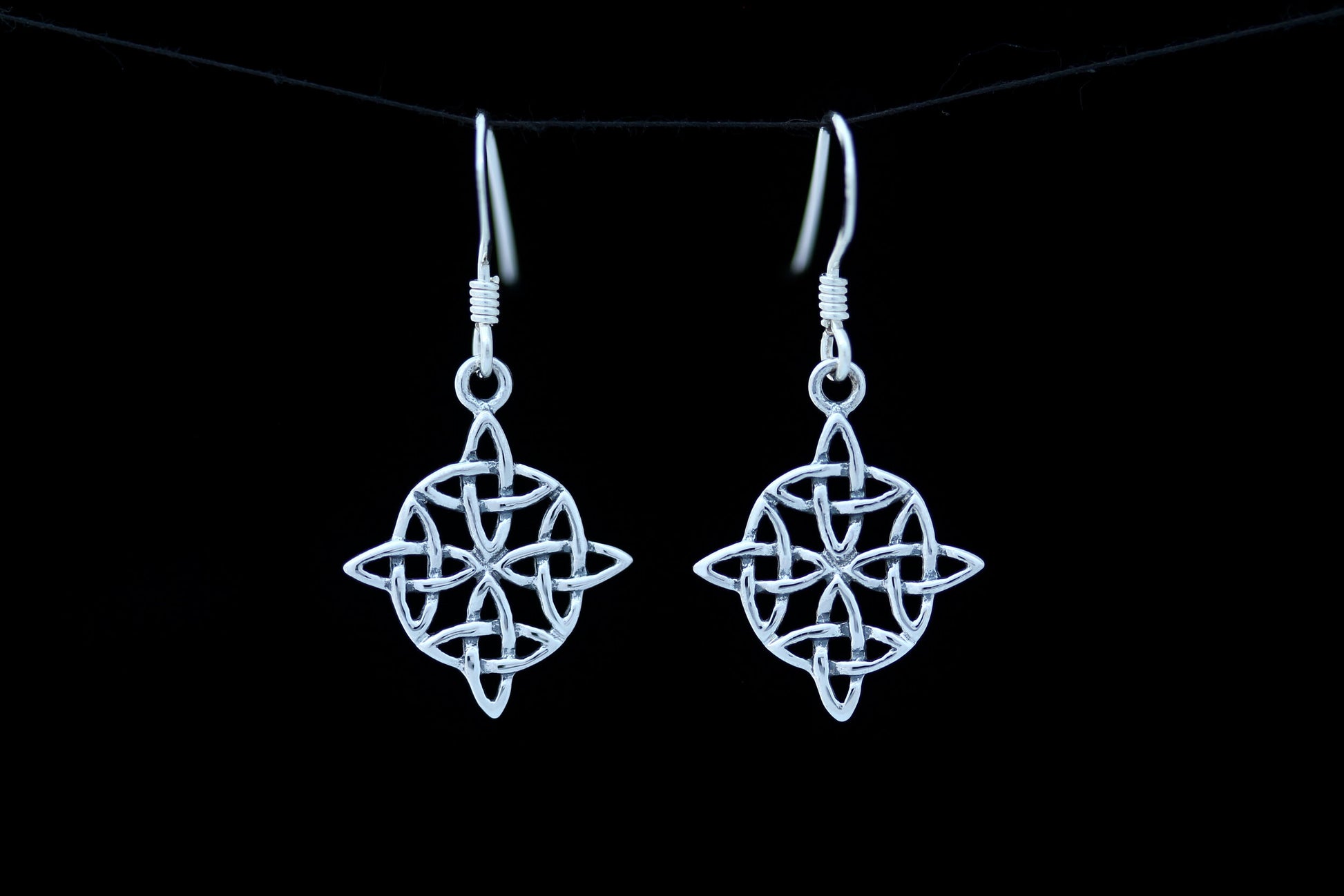 A Pair of Hallmarked 925 Sterling Silver Celtic Knot Earrings with an Elegant Four Directions Design.