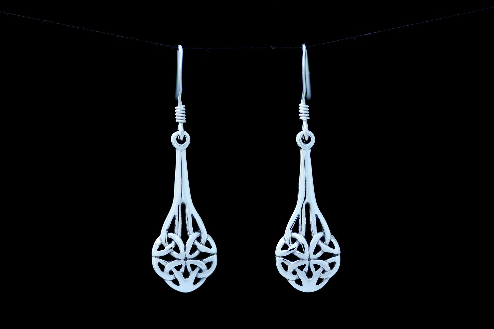 Celtic Four Seasons Knot in a long drop in hallmarked 925 Sterling Silver.