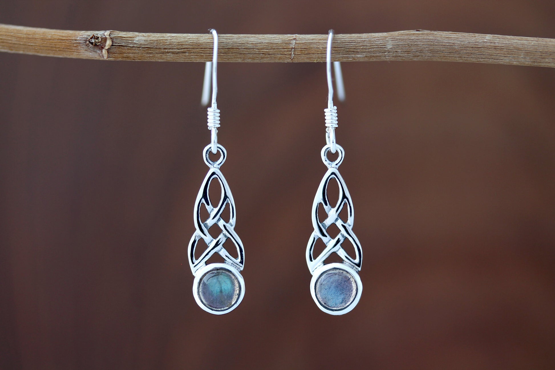 Celtic Knot Earrings - Mother-Daughter Knot with Labradorite