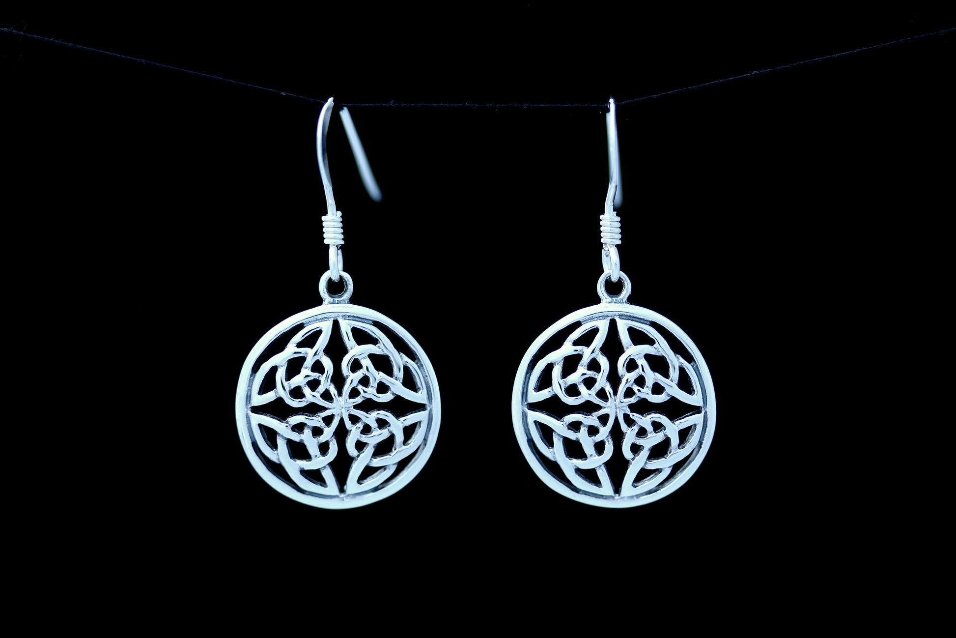A Pair of Hallmarked 925 Sterling Silver Celtic Knot Earrings with an Elegant Rounded Design.