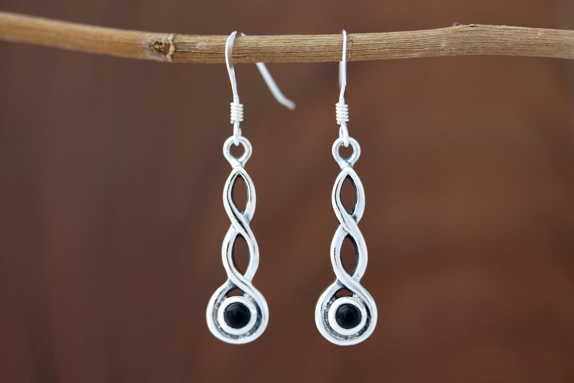 Simple looped Celtic Earrings with Black Onyx set in hallmarked 925 Sterling Silver.