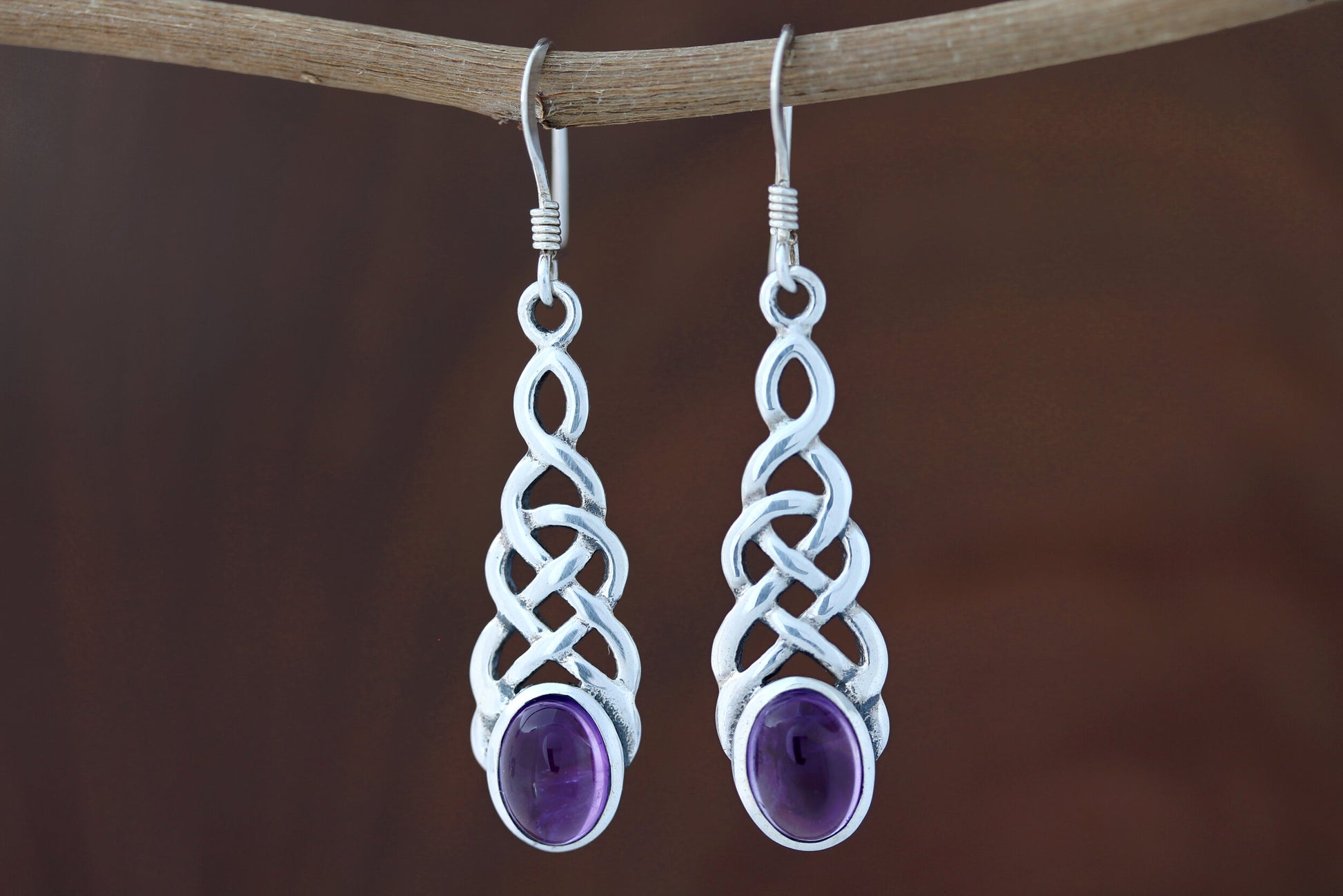 Celtic Knot Earrings - Thick Weave with Amethyst