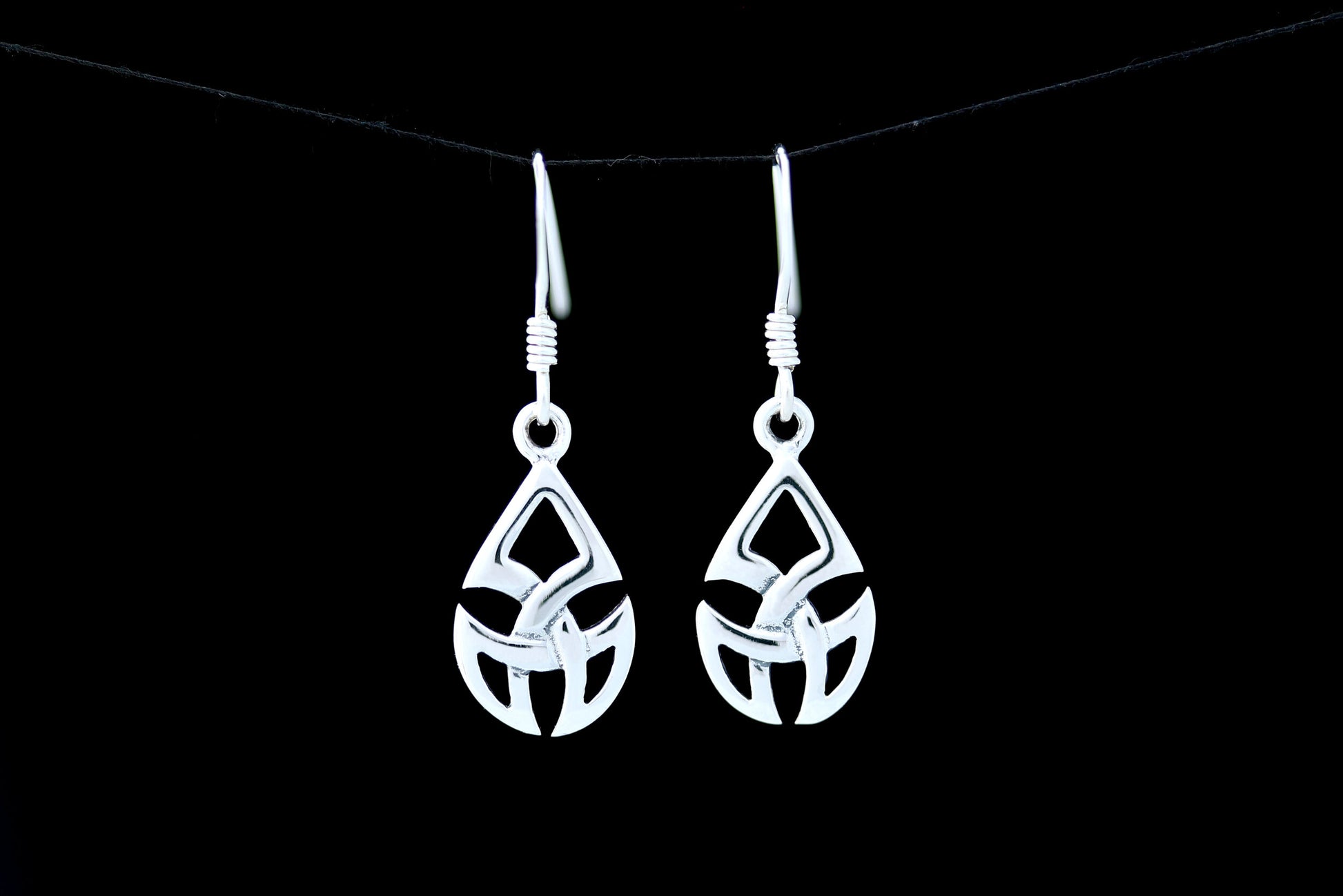 Celtic three point shield knot earrings in hallmarked 925 Sterling Silver.