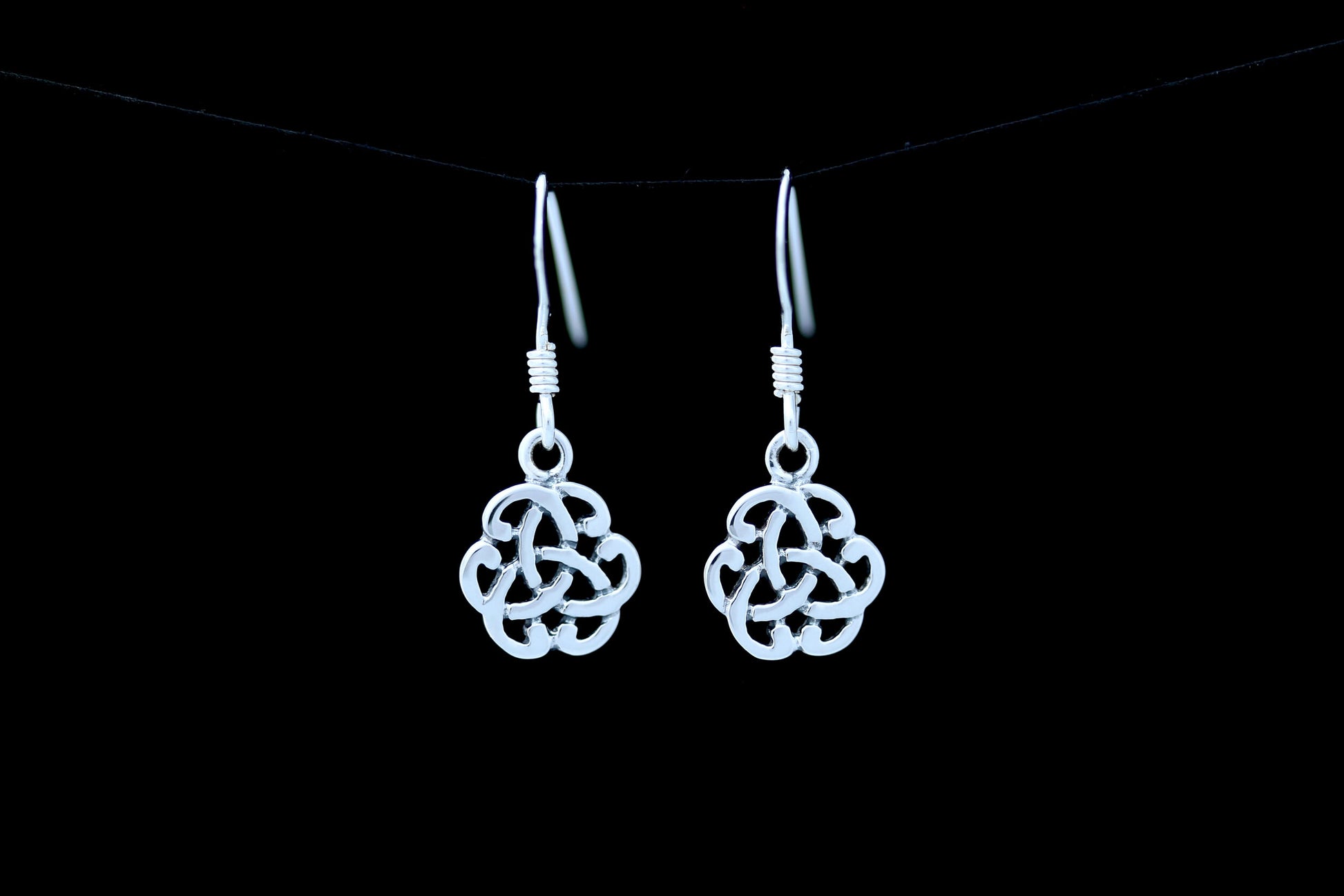 Celtic threefold flower earrings in hallmarked 925 Sterling Silver.
