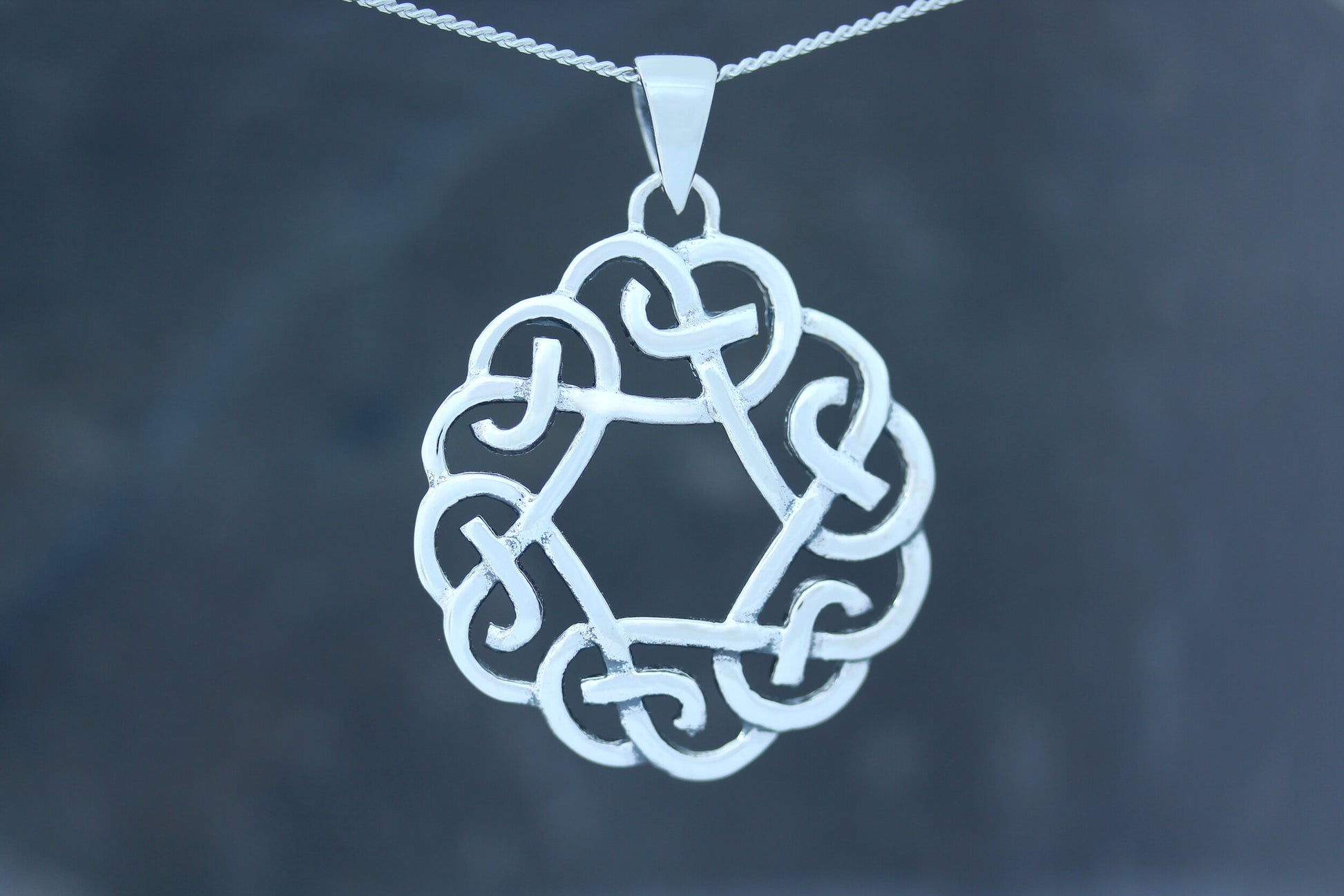 A Sterling Silver Celtic Knot pendant in an infinity wheel knot design.
