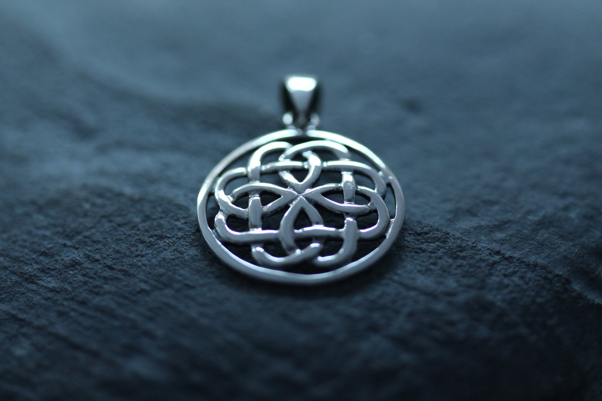 A Sterling Silver 925 Celtic Knot pendant in a looped flower knot design.
