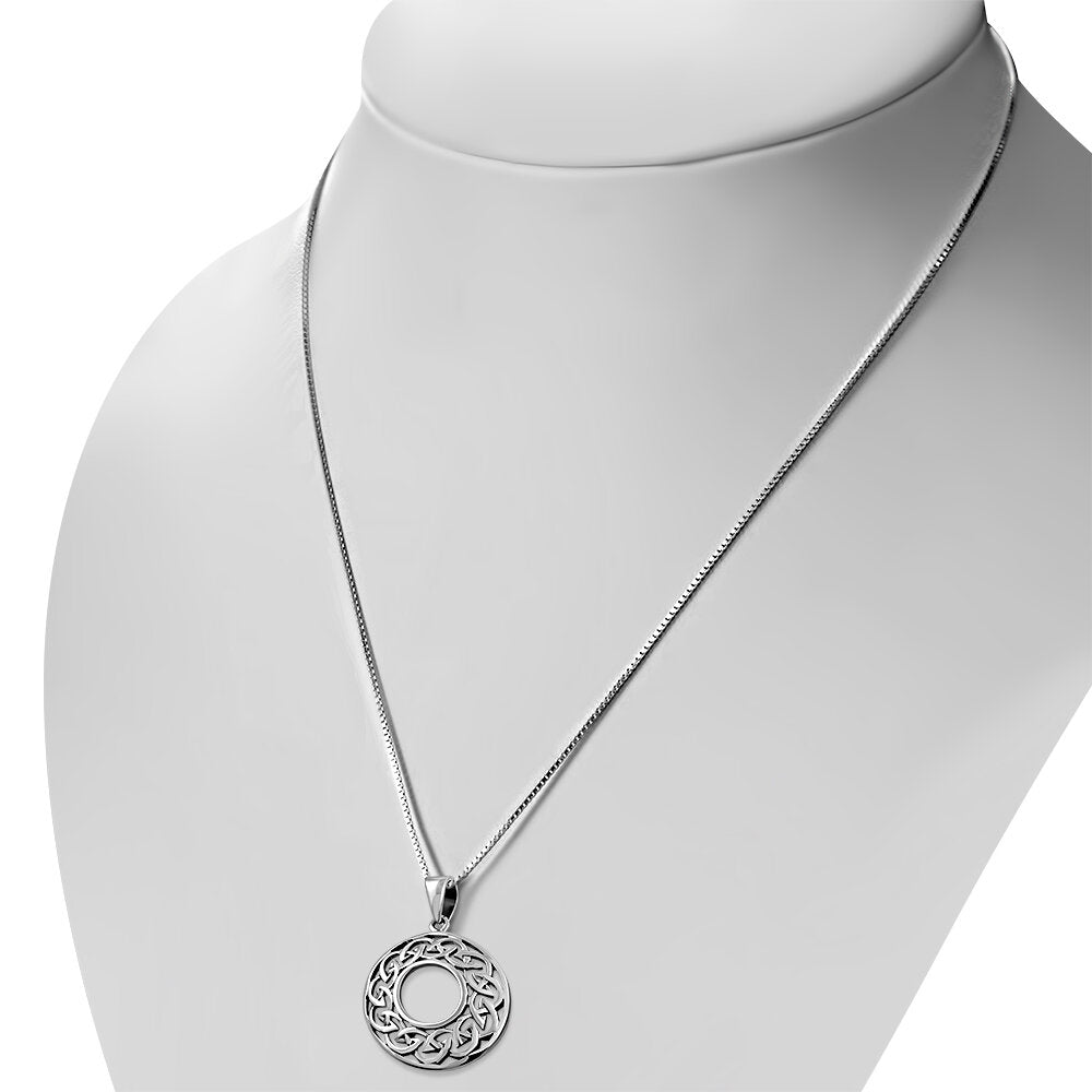 Open Circle Infinity Knot Pendant in hallmarked 925 Sterling Silver.