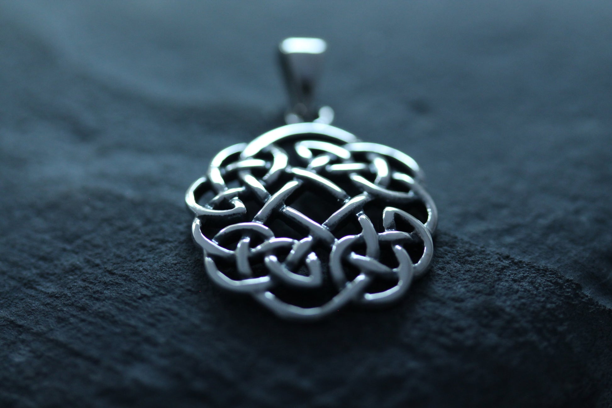 A Sterling Silver 925 Celtic Knot pendant with a round Kells twist design.