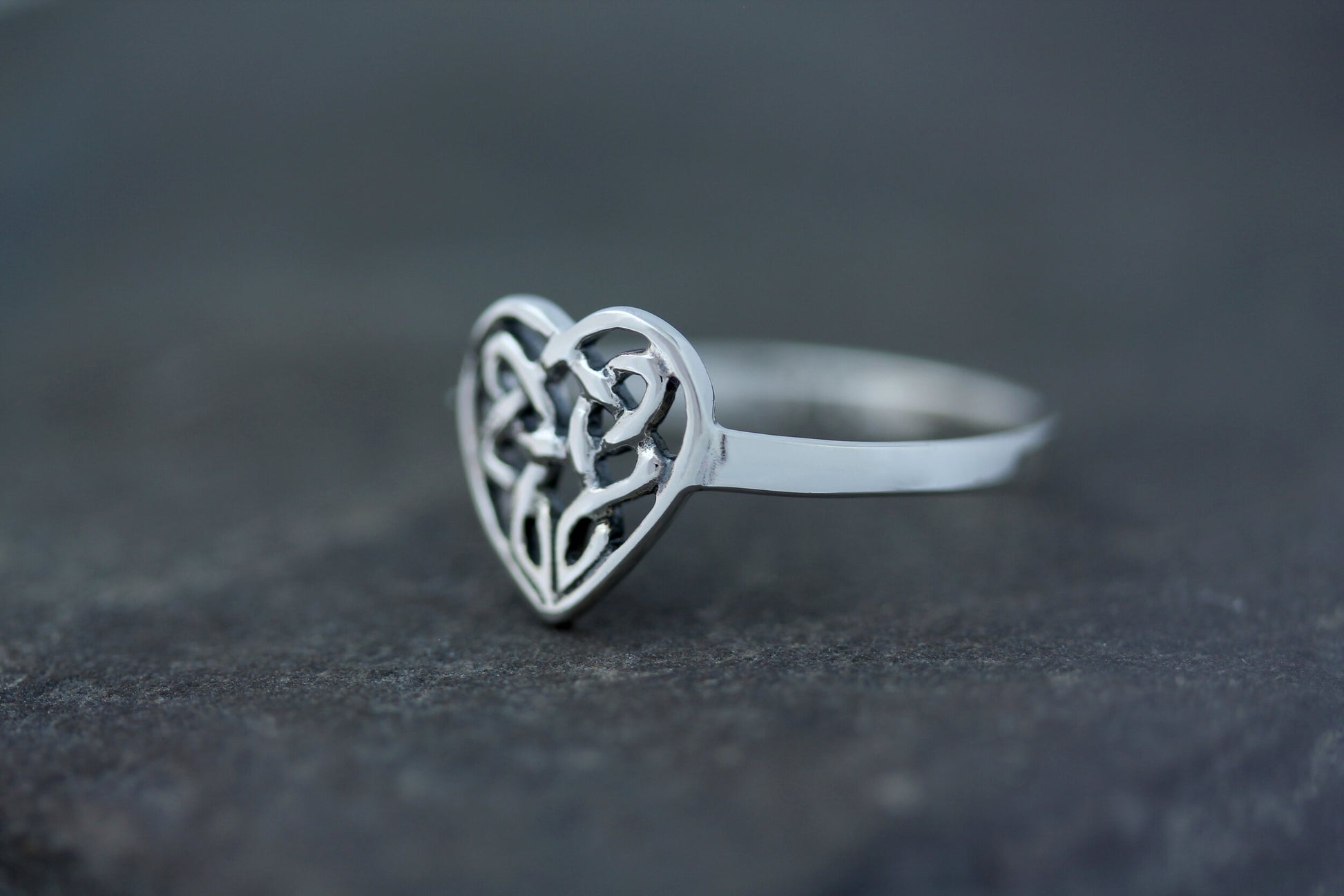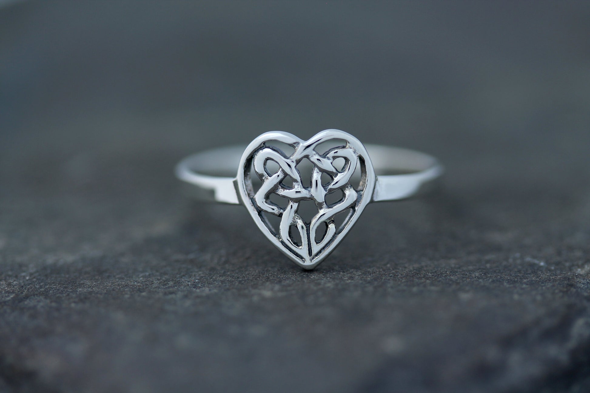 Celtic Heart ring with knotted interior in hallmarked 925 Sterling Silver.