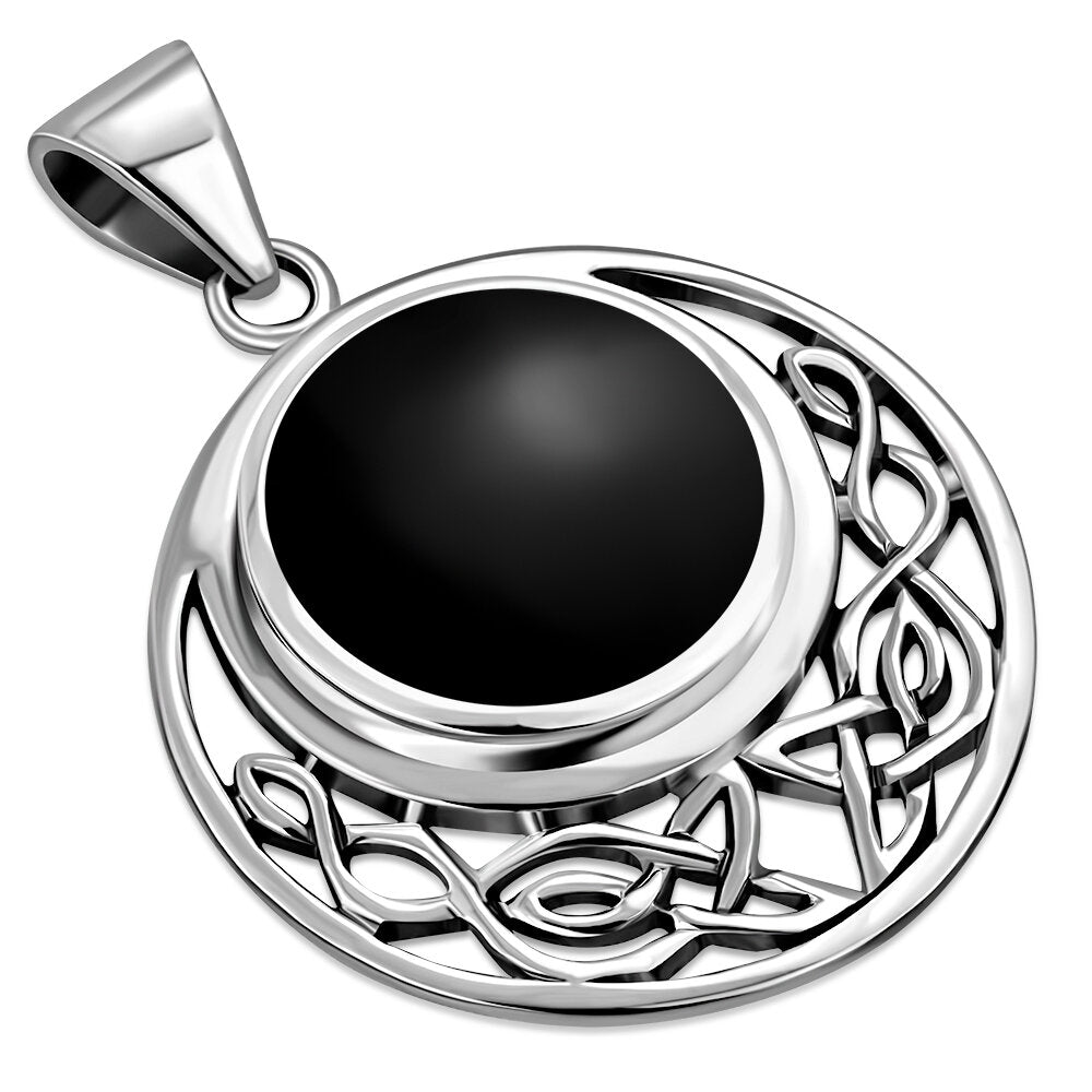 A Half Moon Celtic pendant with Black Onyx set in hallmarked 925 Sterling Silver.