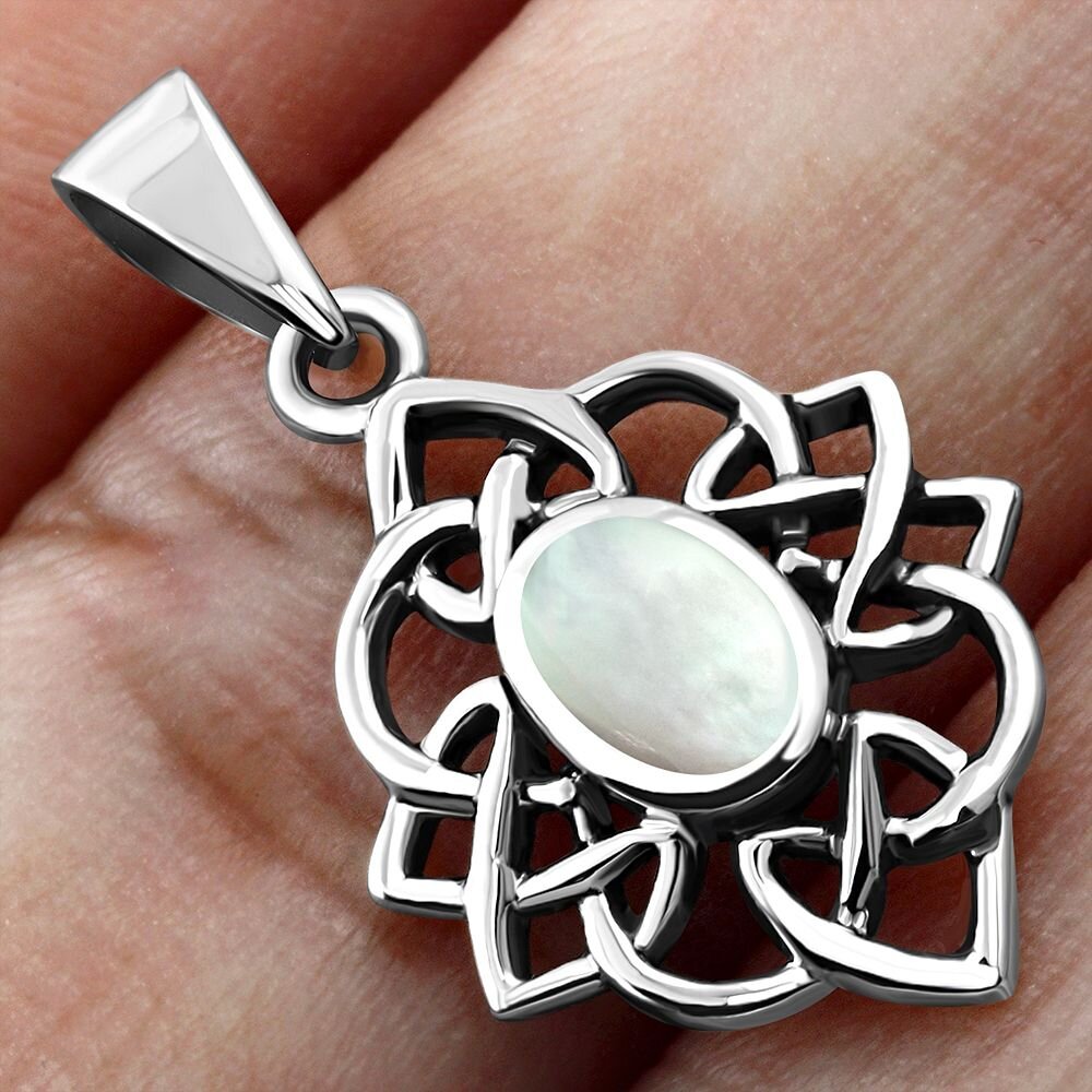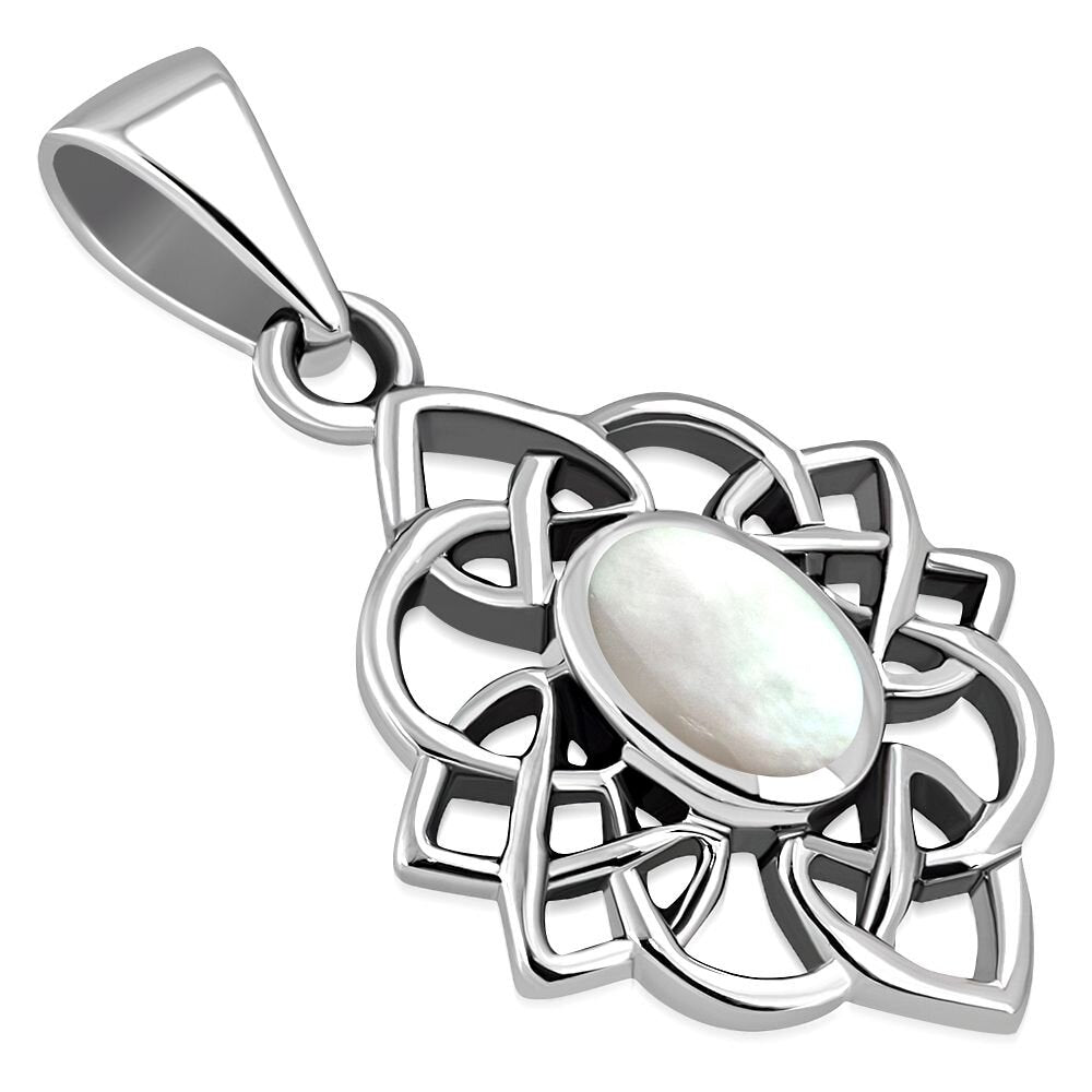 Celtic Stone Pendant - Celtic Knot Border with Mother of Pearl (Narrow)