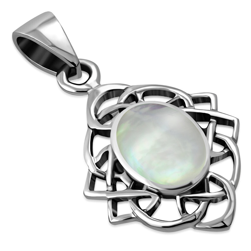 Celtic Stone Pendant - Celtic Knot Border with Mother of Pearl (Wide)