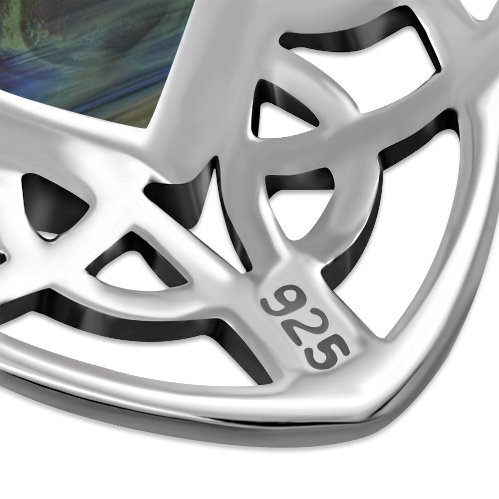 A Hallmarked 925 Sterling Silver Celtic Knot Pendant Set with a Diamond Shaped Abalone Shell.