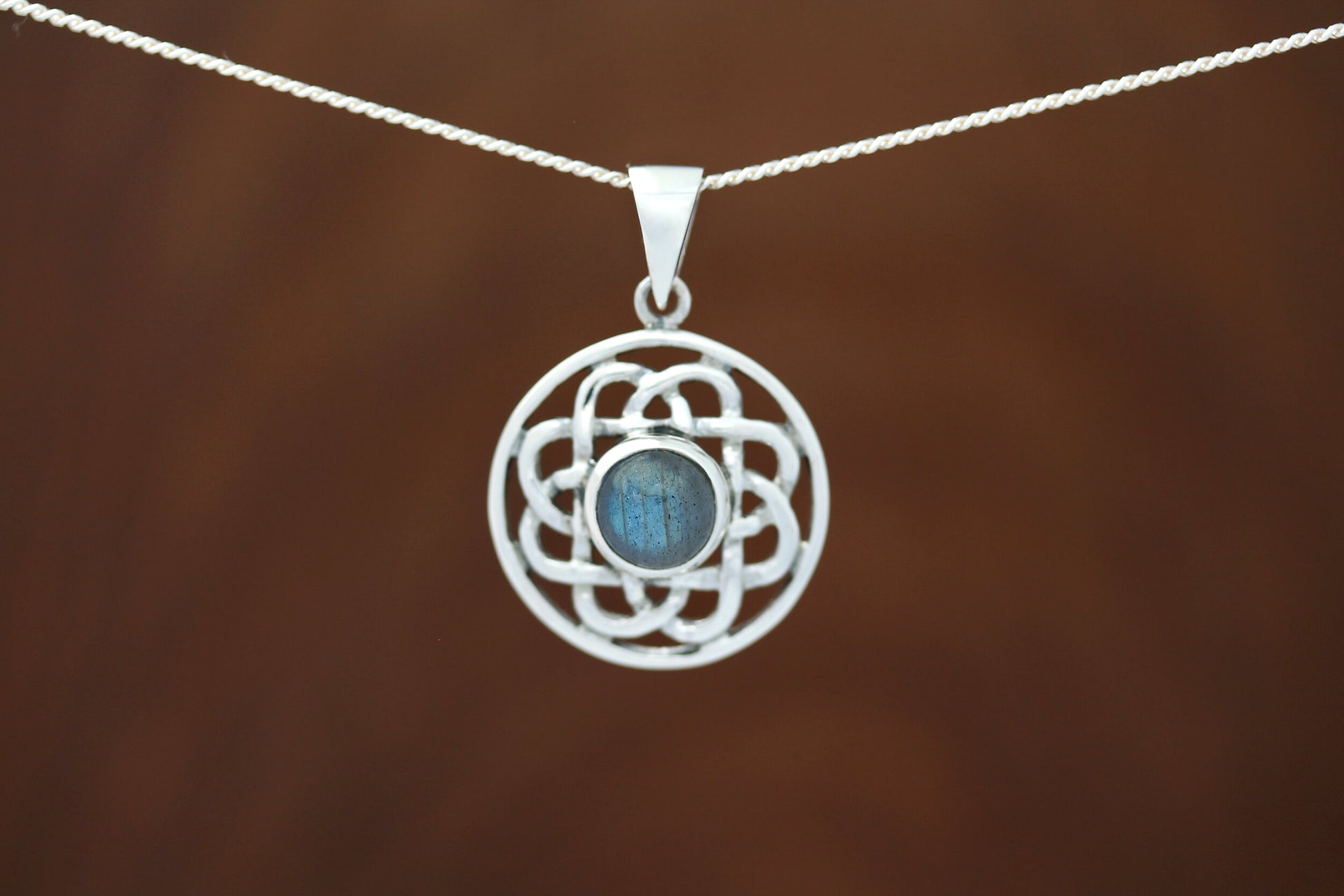 Celtic pendant with Labradorite set in hallmarked 925 Sterling Silver.