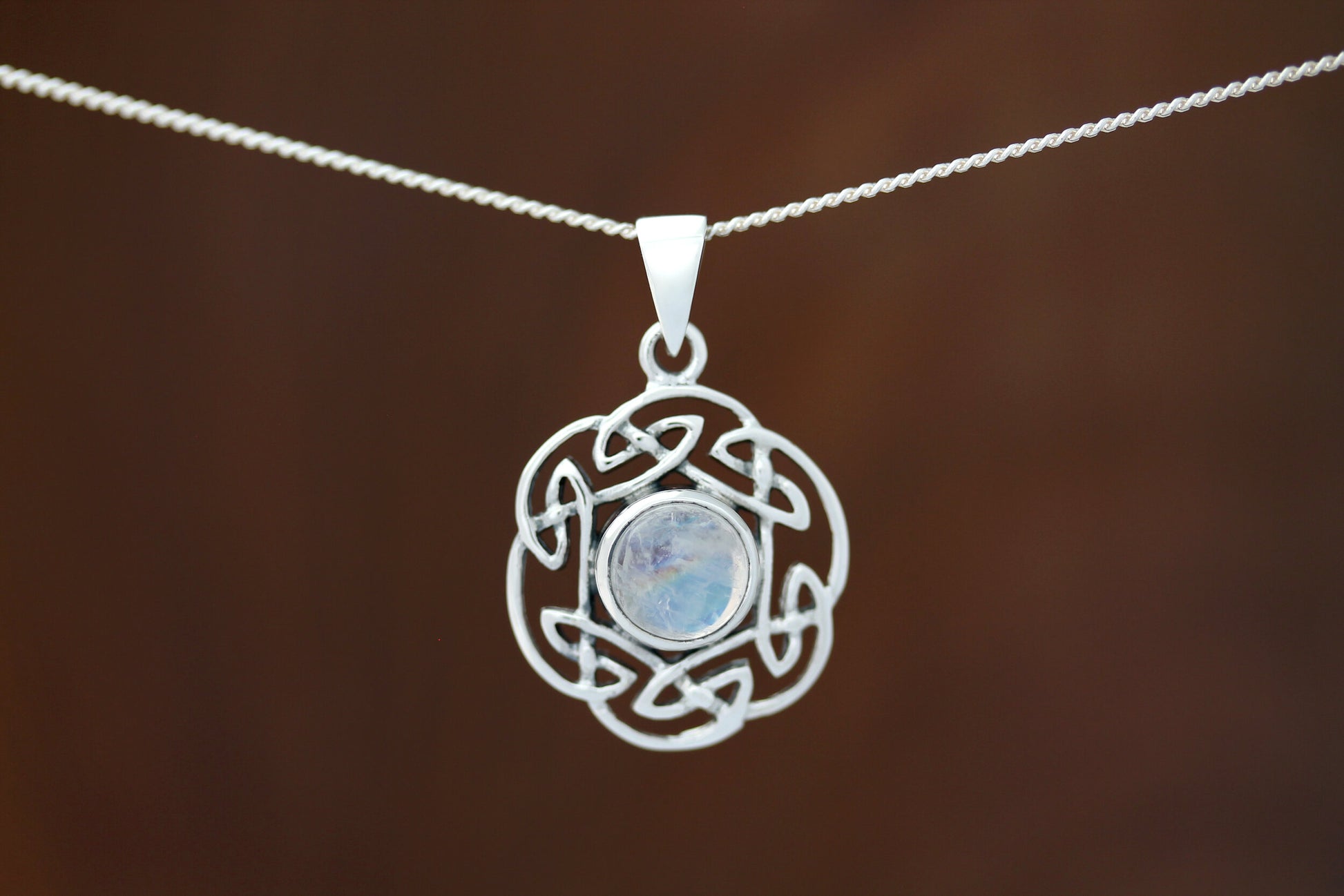 Celtic pendant with Moonstone set in hallmarked 925 Sterling Silver.