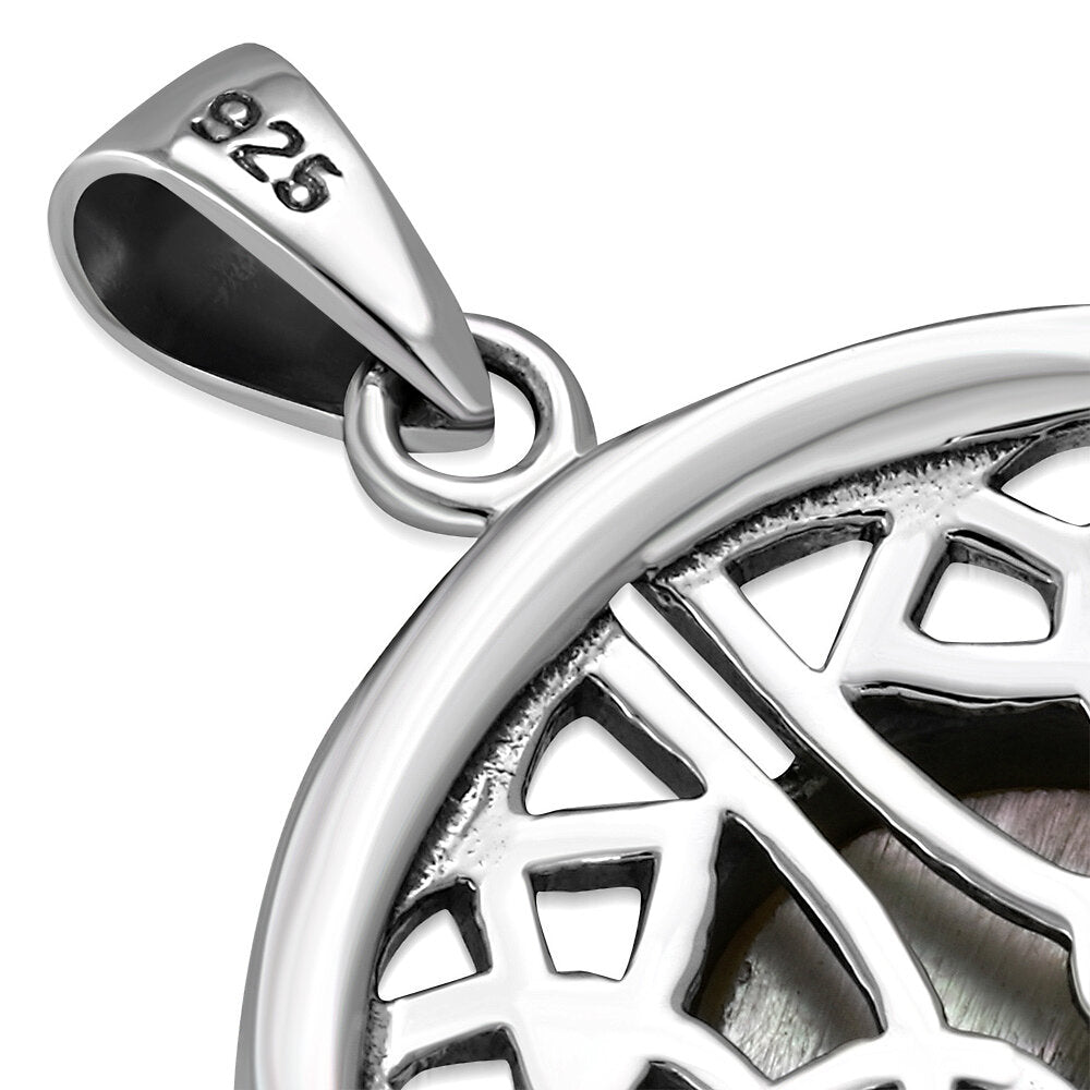 Celtic Shield with Mother of Pearl centre set in hallmarked 925 Sterling Silver.