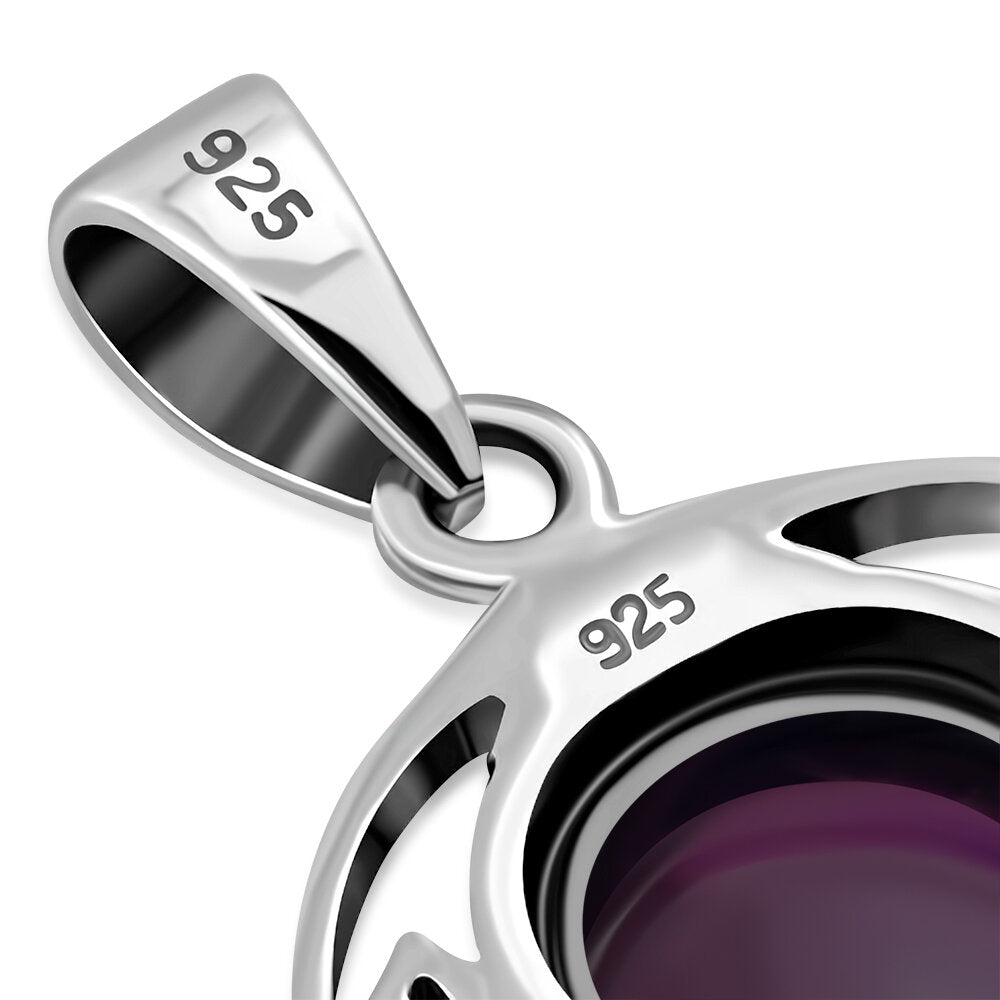 The half moon Celtic knot pendant with Garnet set in hallmarked 925 Sterling Silver.