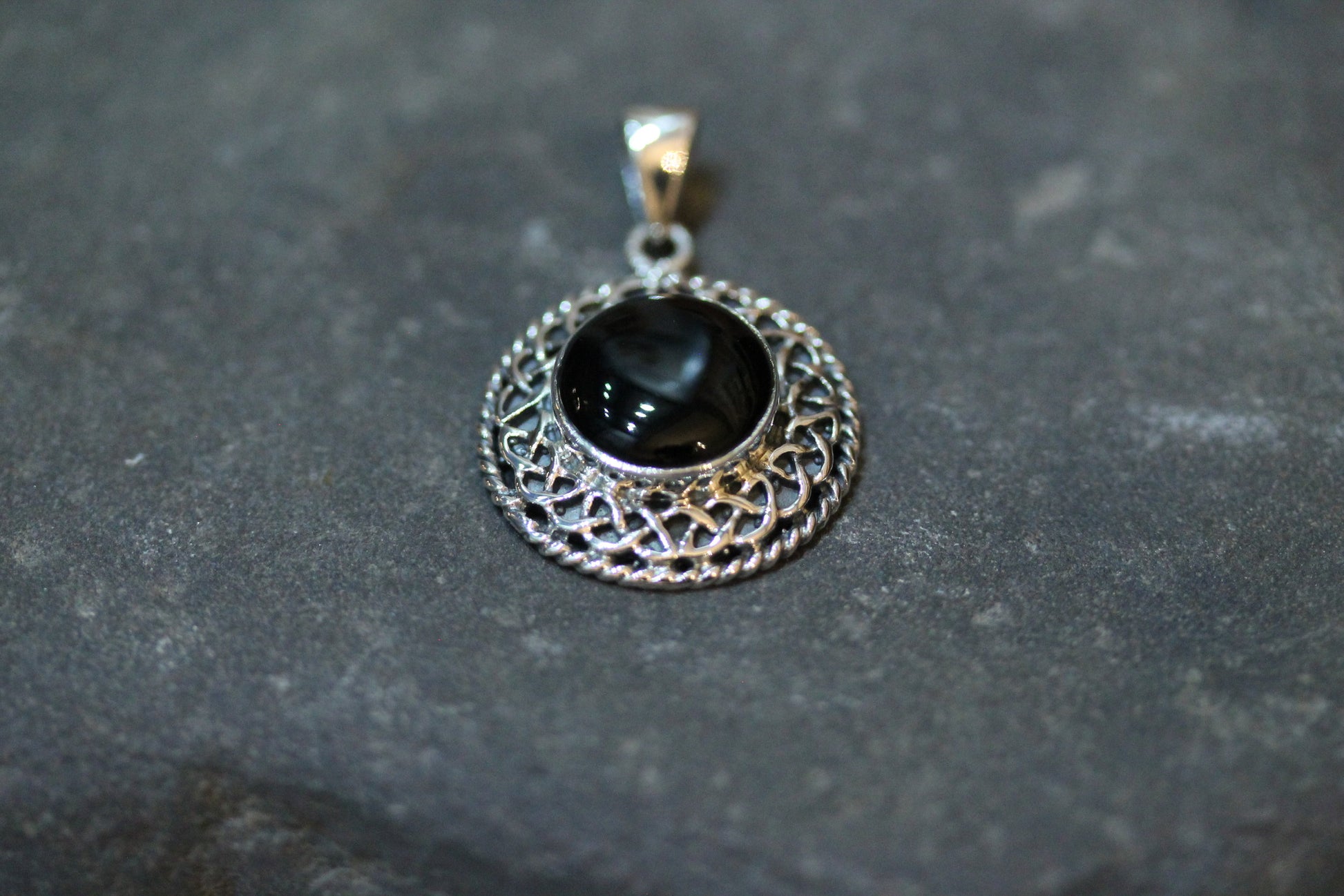 Celtic pendant with Black Onyx set in hallmarked 925 Sterling Silver.