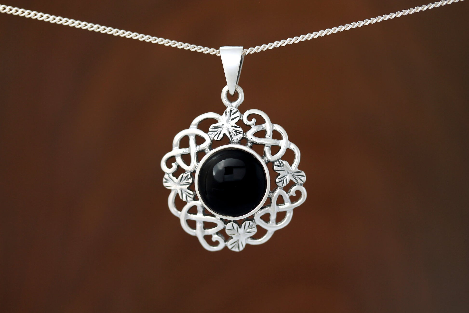 Celtic pendant with Black Onyx set in hallmarked 925 Sterling Silver.