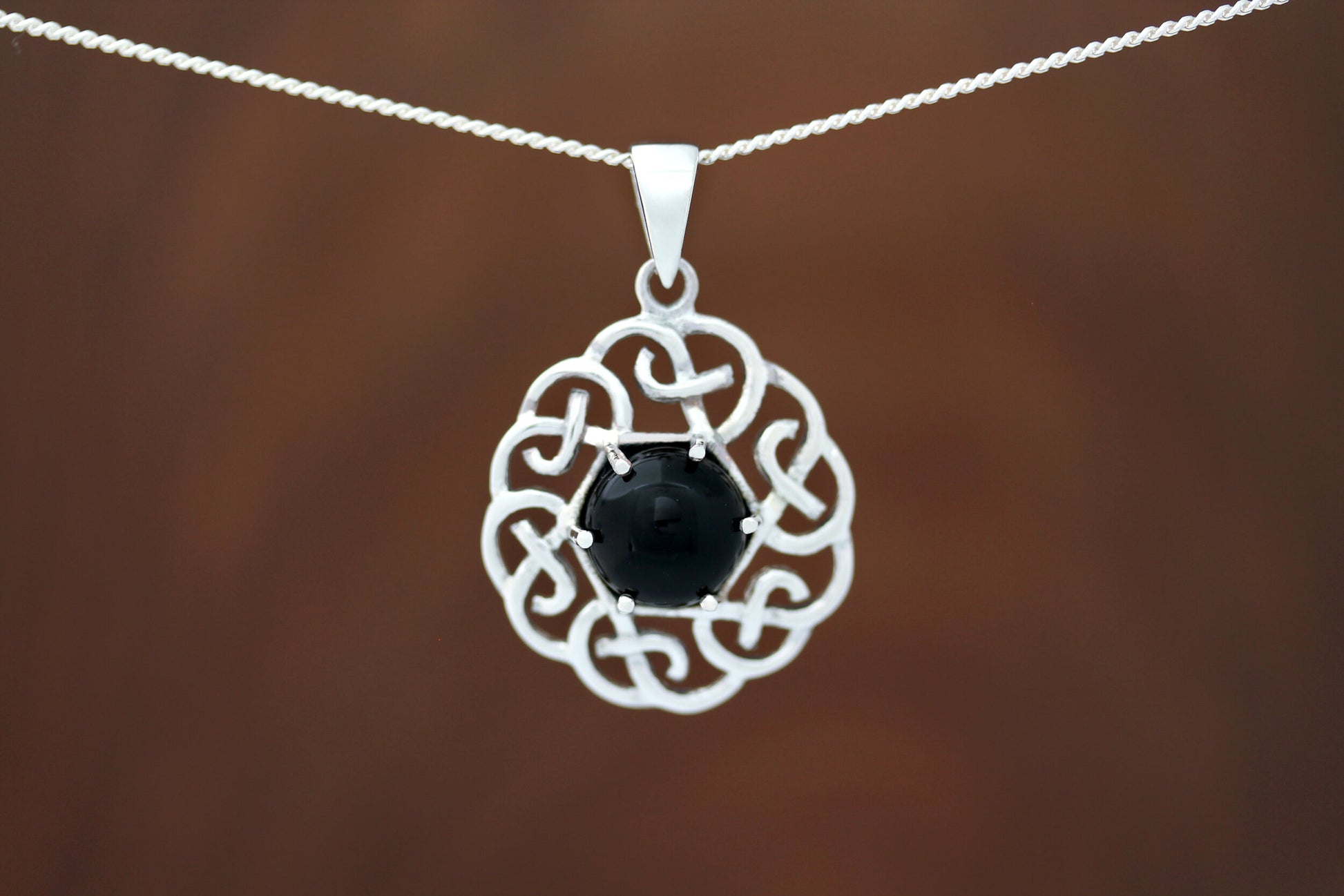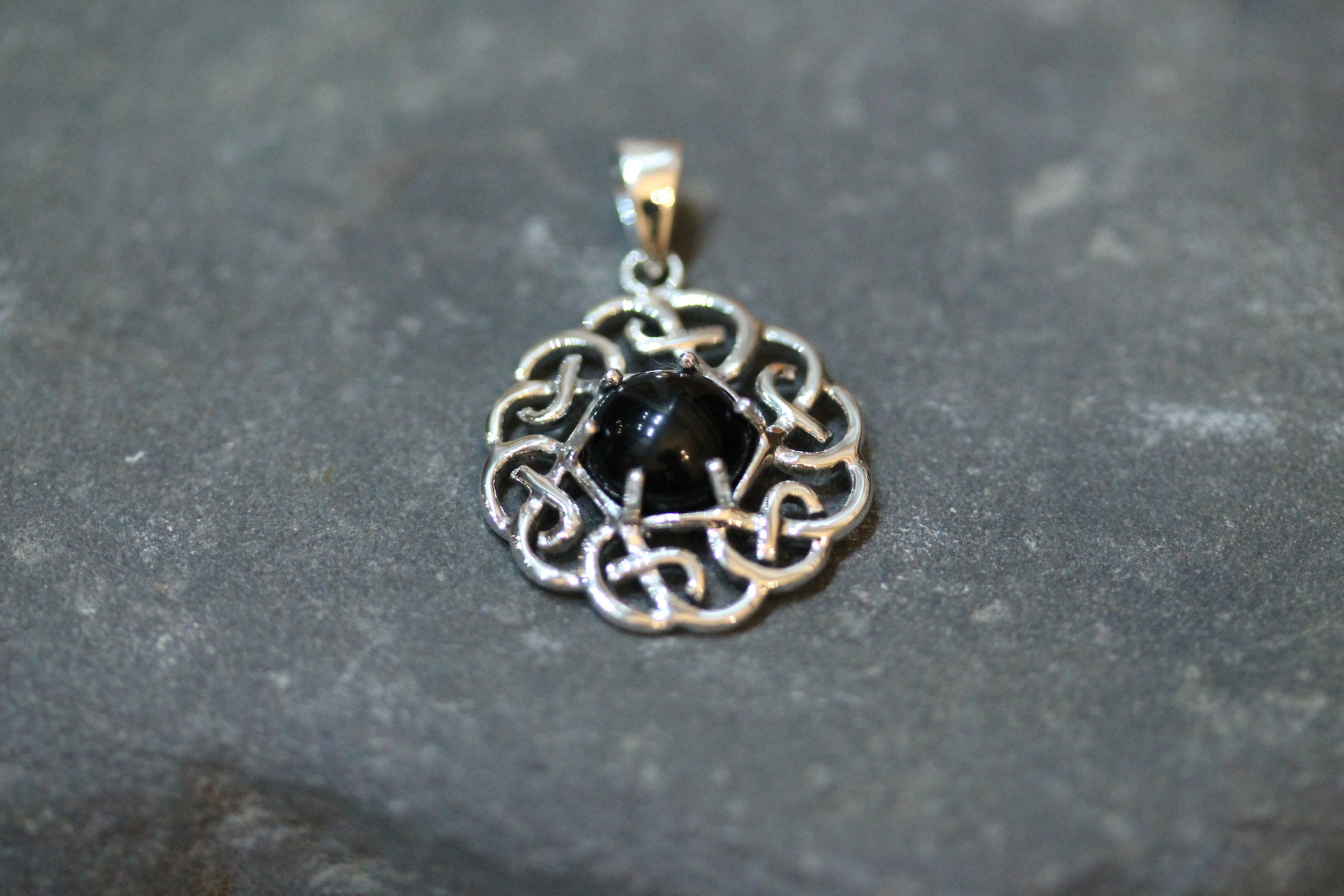Celtic Knot pendant with Black Onyx set in hallmarked 925 Sterling Silver.