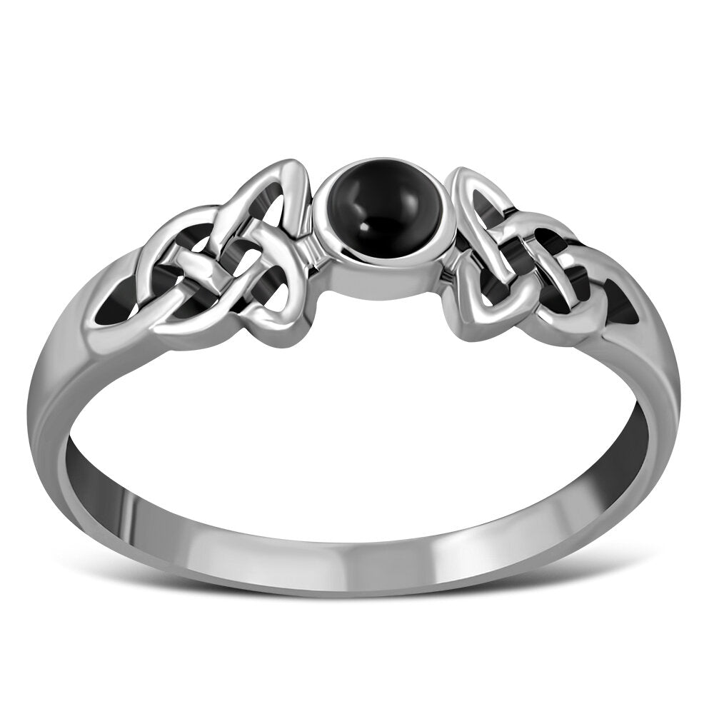 Celtic Knot Ring with round Black Onyx set in hallmarked 925 Sterling Silver.