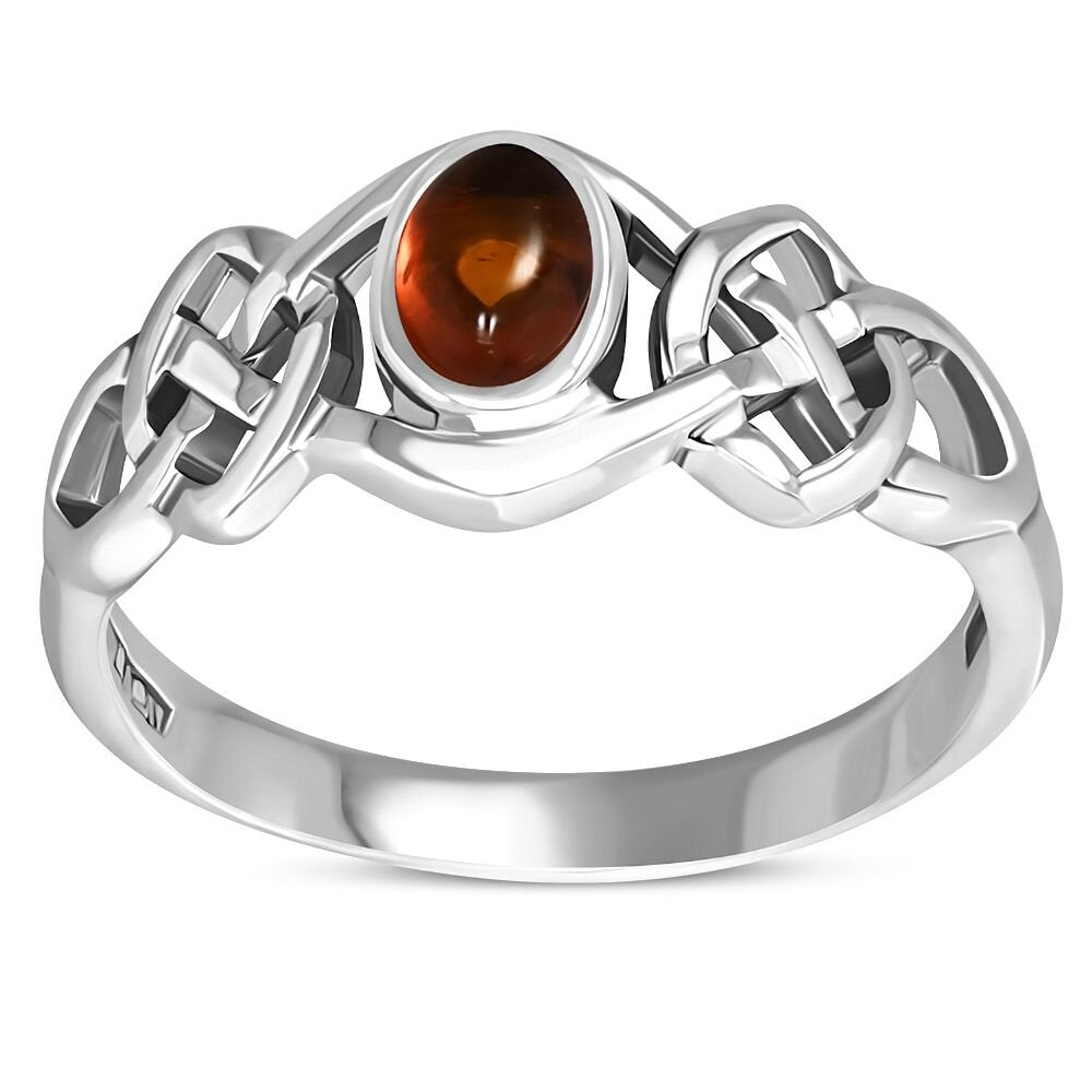 Celtic Knot Ring with oval Amber set in hallmarked 925 Sterling Silver.