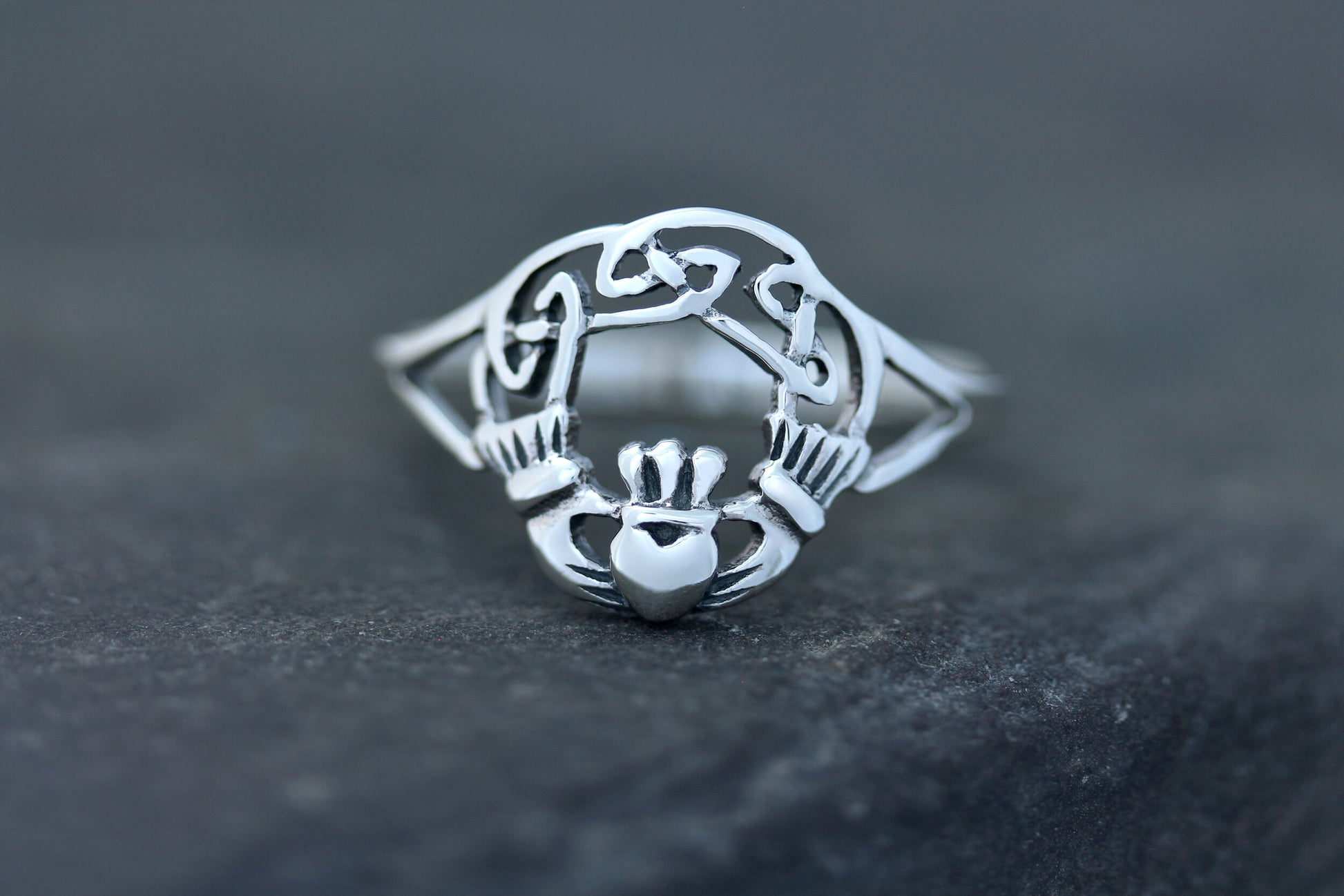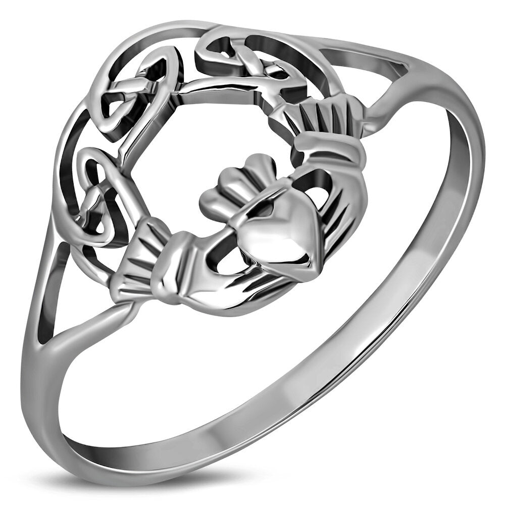 Claddagh with Celtic knot ring in hallmarked 925 Sterling Silver.