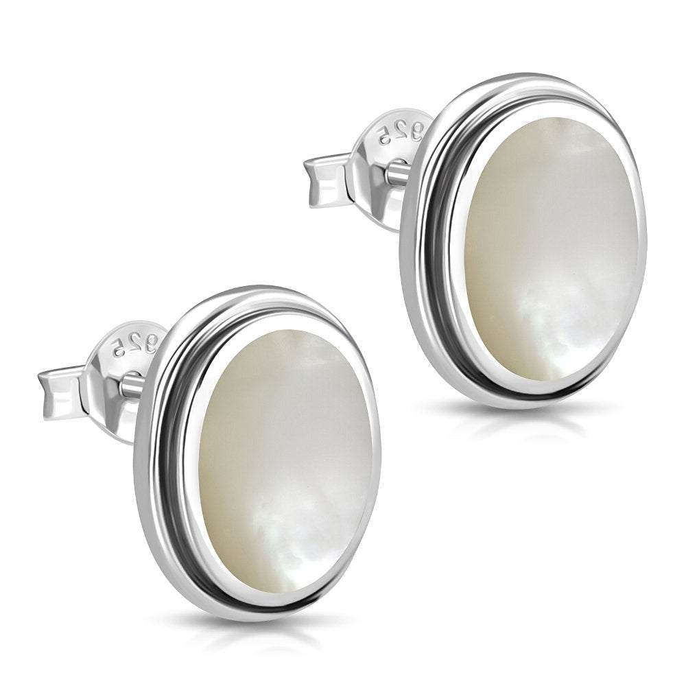 A Pair of Hallmarked 925 Sterling Silver Simple Oval Stud Earrings Set with Mother of Pearl.