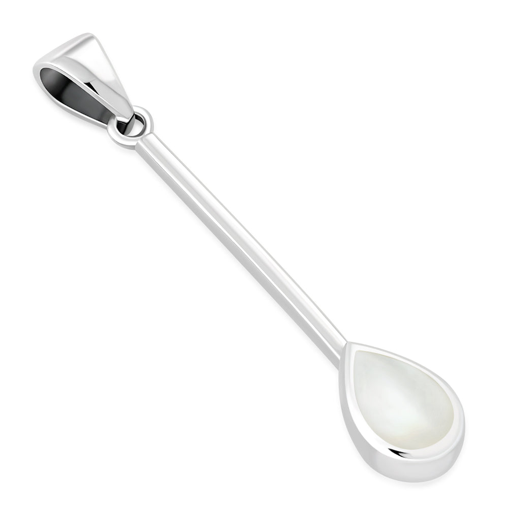 Contemporary Elongated Teardrop Pendant set in 925 Sterling Silver with Mother of Pearl.