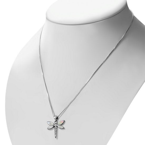 Dragonfly pendant with Mother of Pearl shell set in hallmarked 925 Sterling Silver.