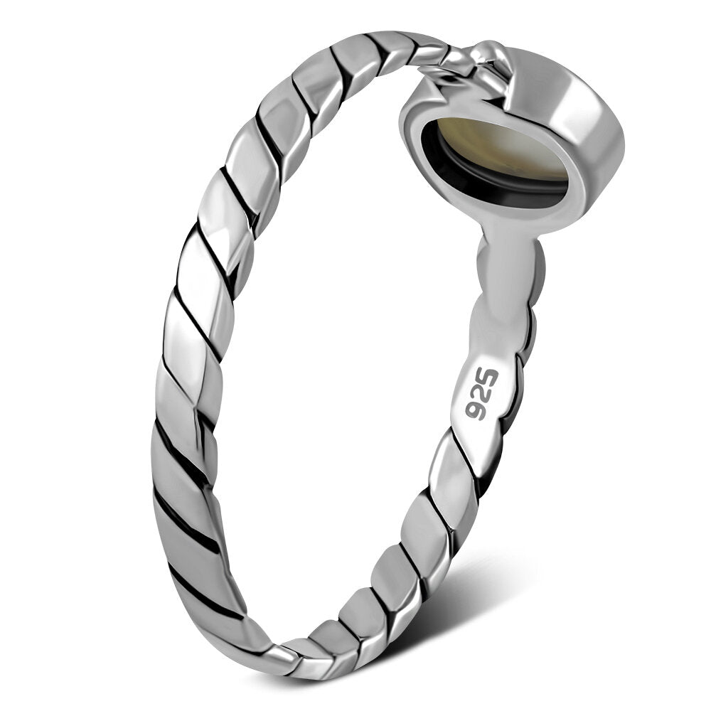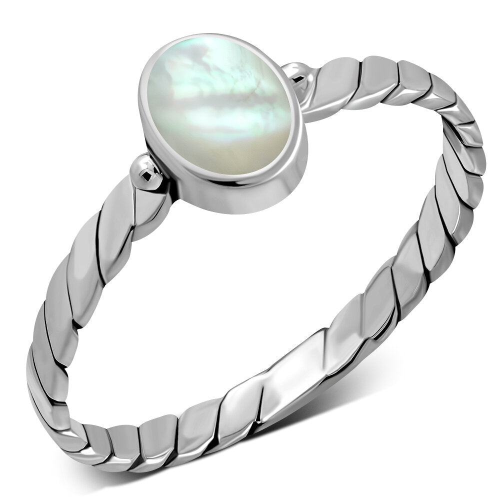 Contemporary Stone Ring- Roped Band with Mother of Pearl
