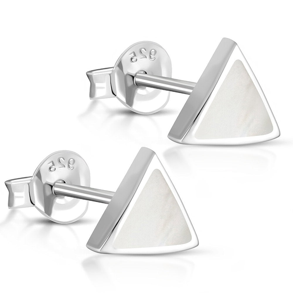 A Pair of Hallmarked 925 Sterling Silver Triangular Stud Earrings Set with Mother of Pearl.