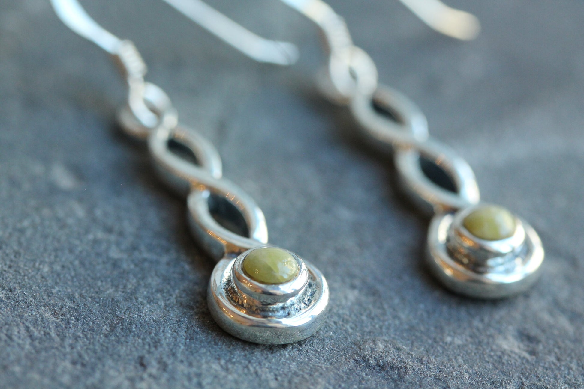 A Pair of Hallmarked 925 Sterling Silver Celtic Knot Earrings Featuring Scottish Marble Rounds.