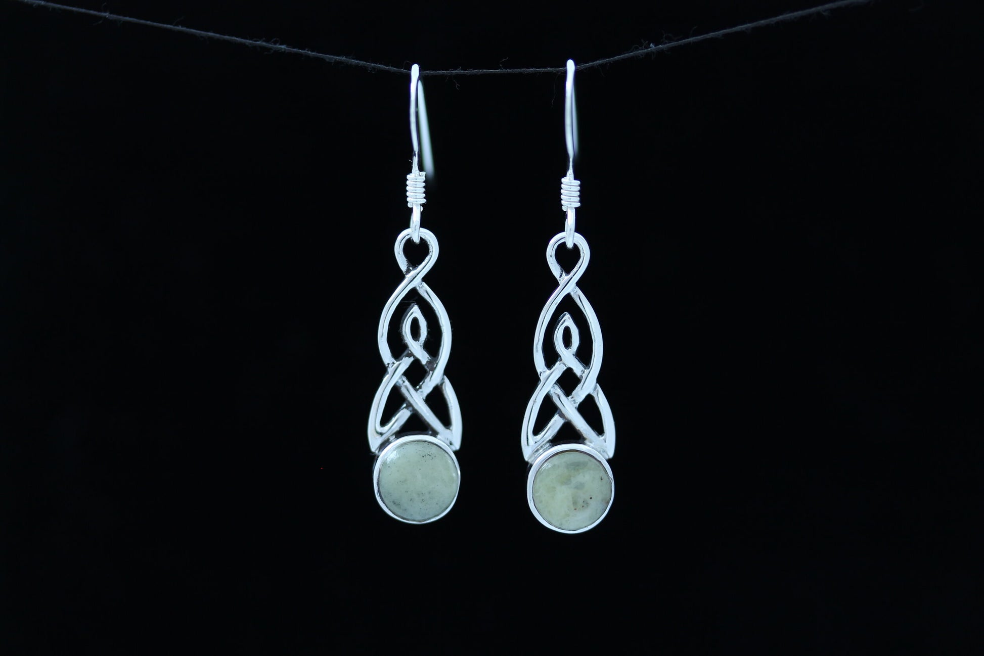 A Pair of Hallmarked 925 Sterling Silver Celtic Mother and Daughter Earrings Featuring Scottish Marble Cabochons.