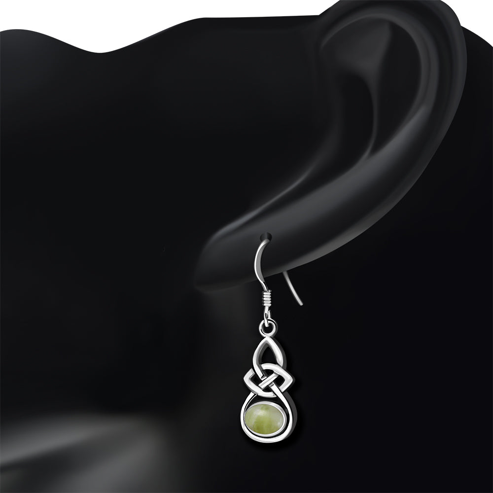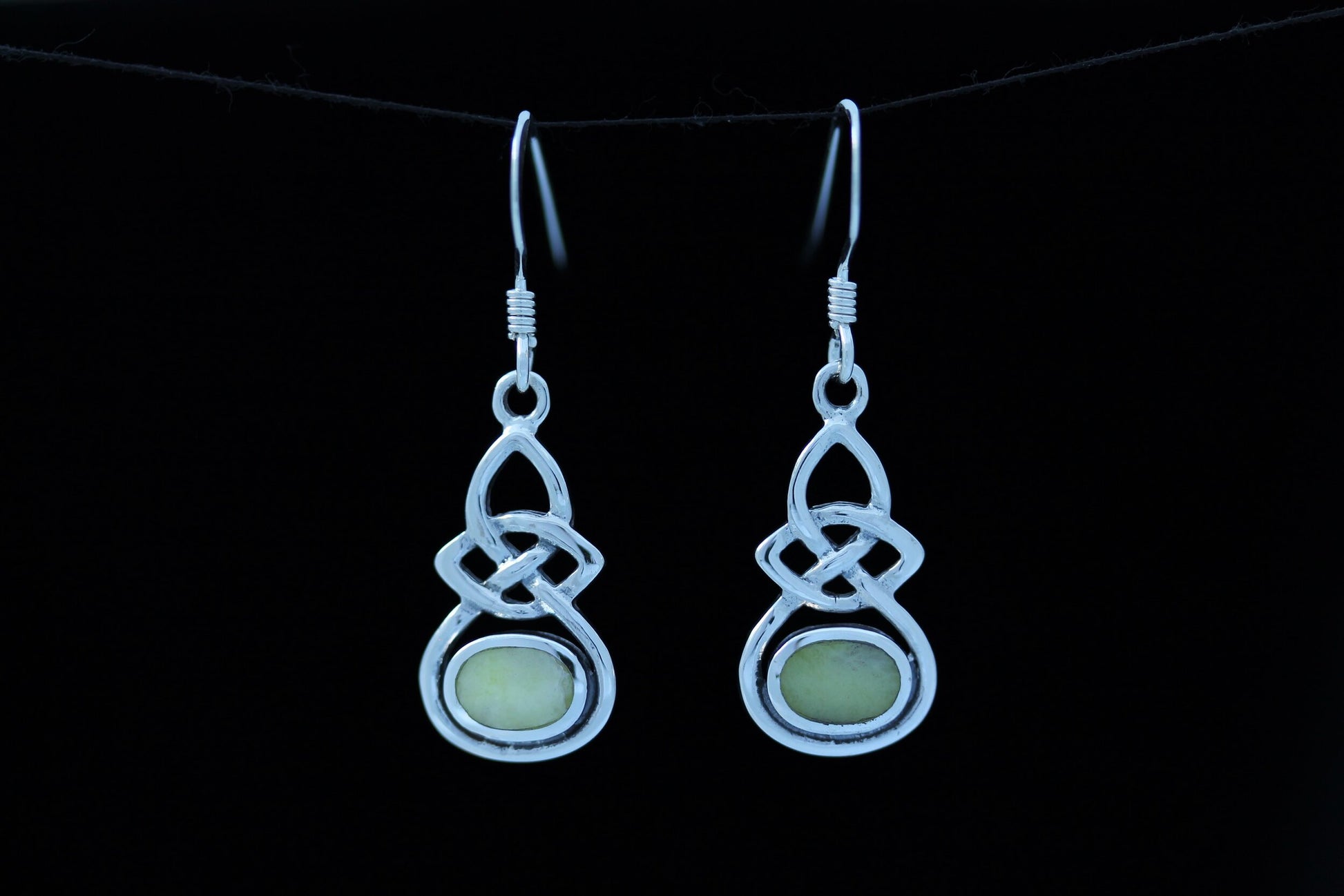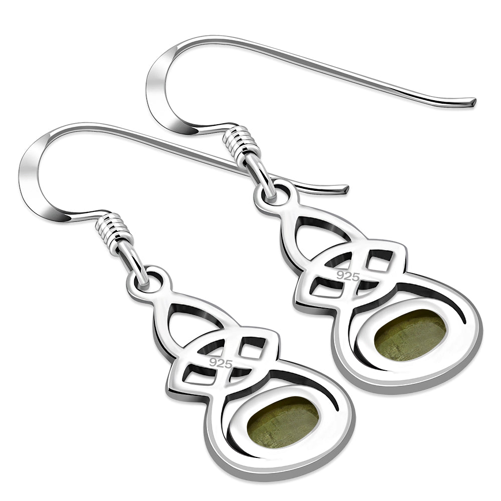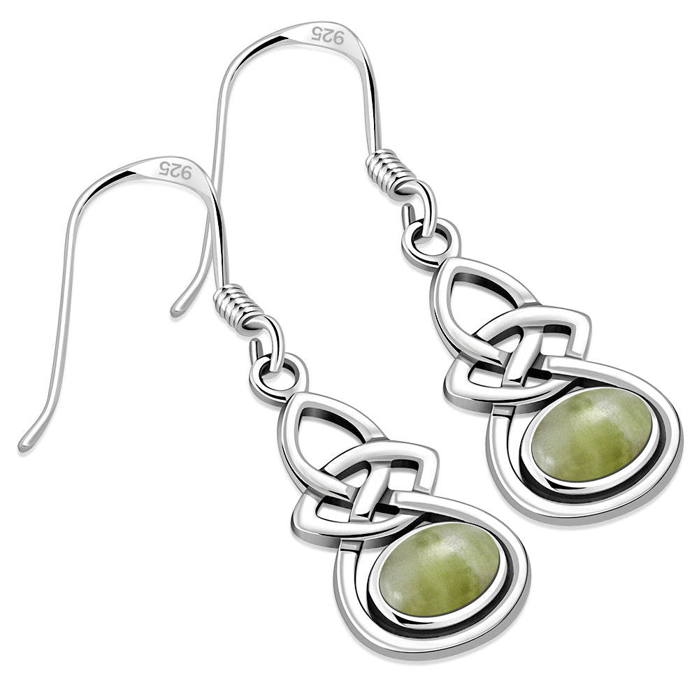 A Pair of Hallmarked 925 Sterling Silver Celtic Knot Earrings Featuring Scottish Marble Cabochons.