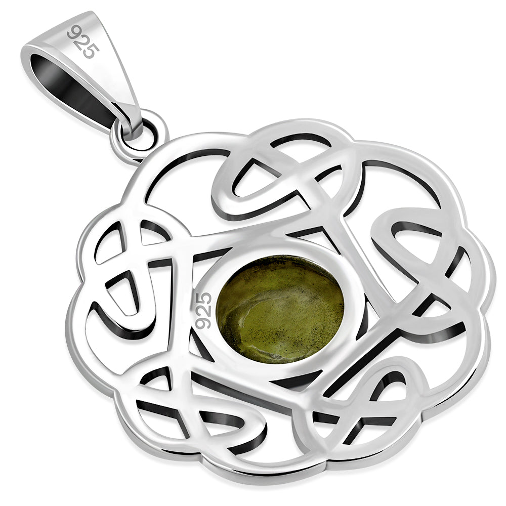 Celtic Knot Pendant with round Scottish Marble set in hallmarked 925 Sterling Silver.