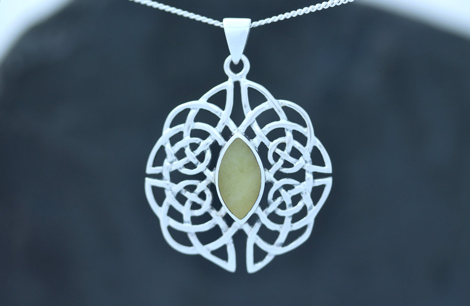 Celtic Dara Knot with Marquee shaped Scottish Marble set in hallmarked 925 Sterling silver.