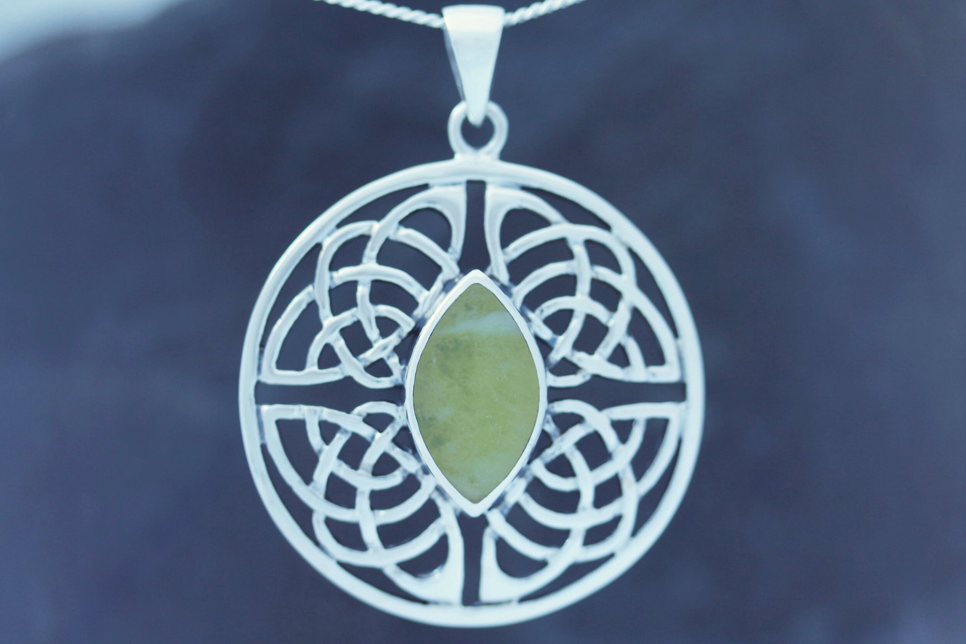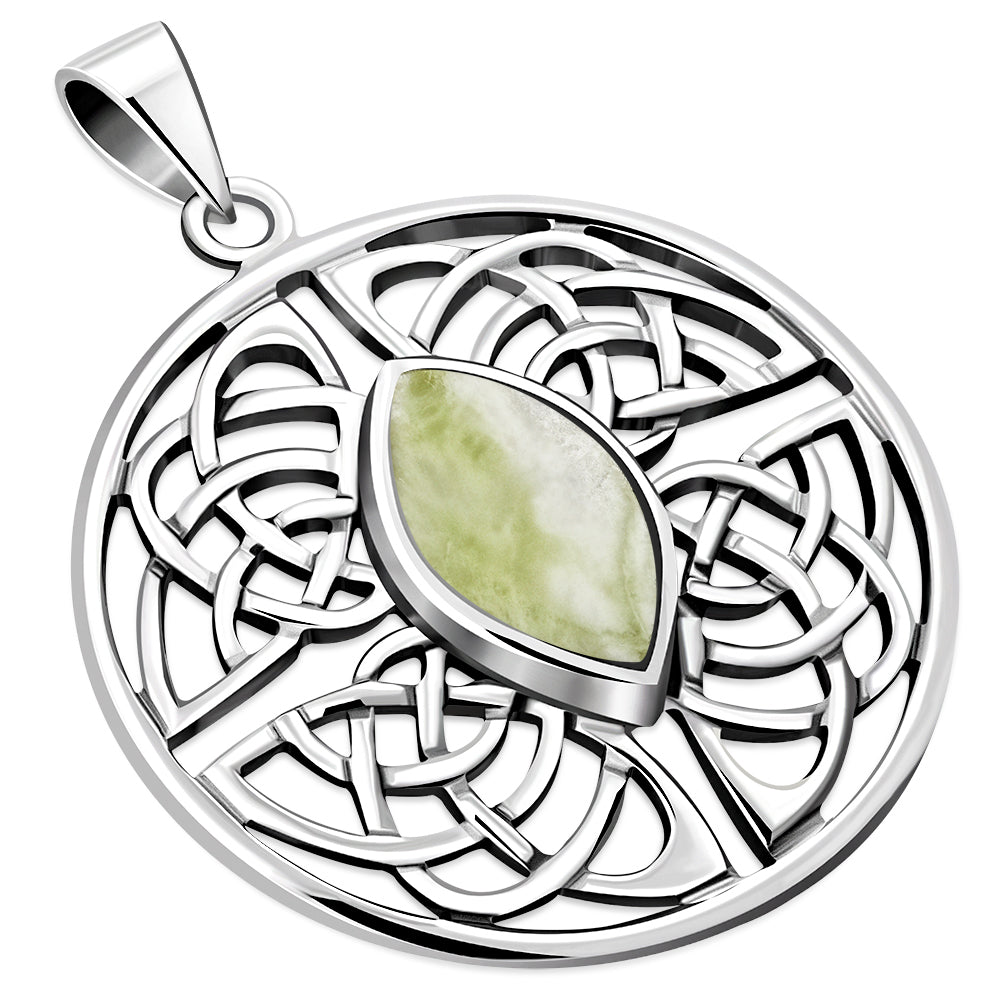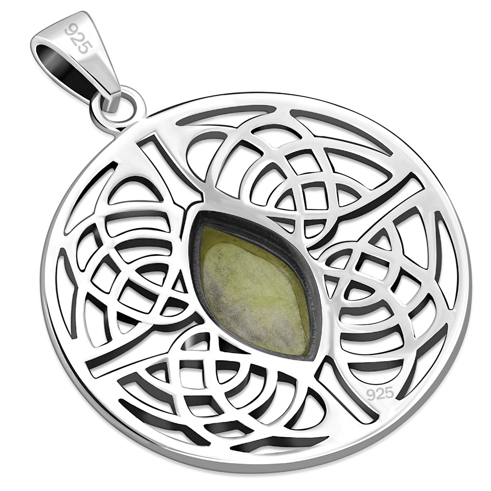 A Hallmarked 925 Sterling Silver Celtic Knot Pendant Set with a Marquis Shaped Scottish Marble Stone.