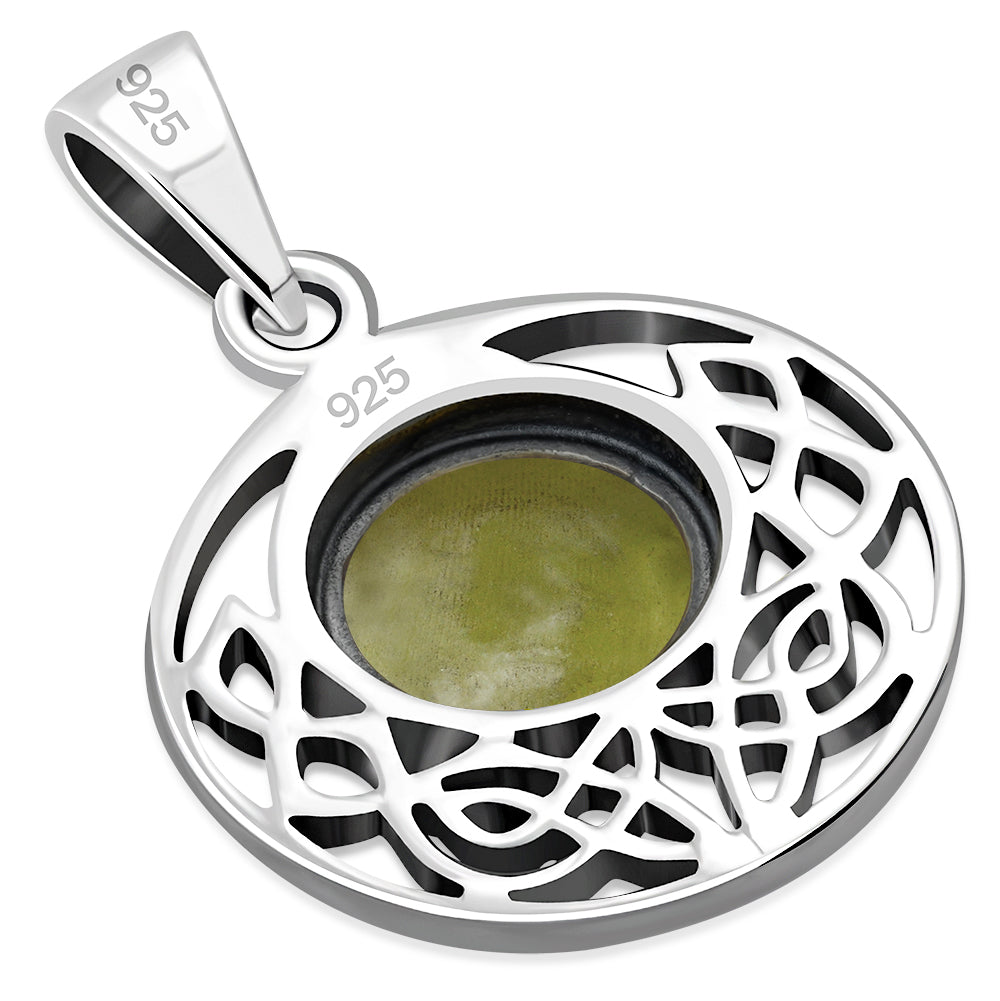 Round half moon Celtic knot pendant with Scottish Marble set in hallmarked 925 Sterling Silver.