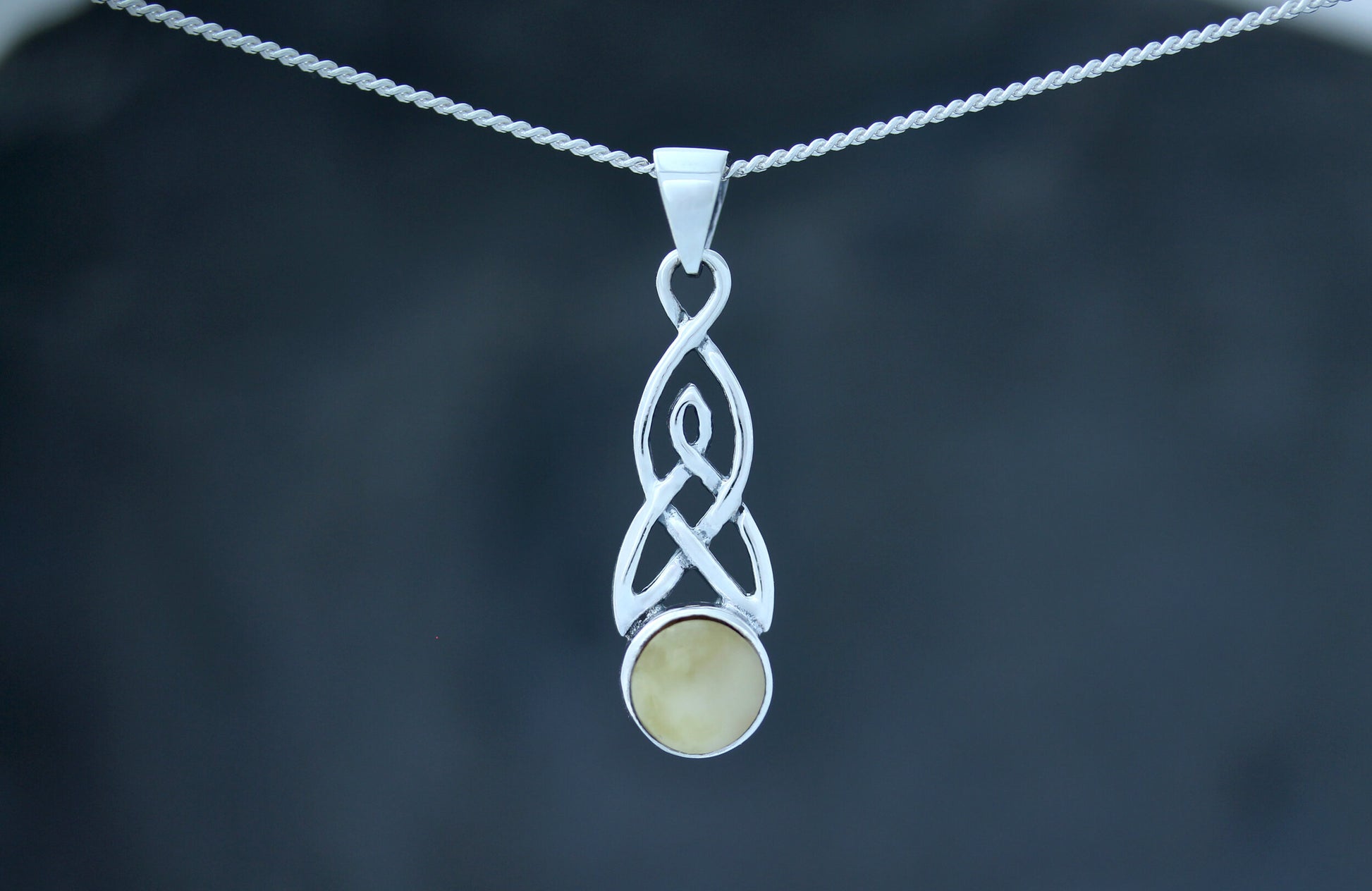 Celtic Mother-Daughter Knot with round Scottish Marble set in hallmarked 925 Sterling Silver.