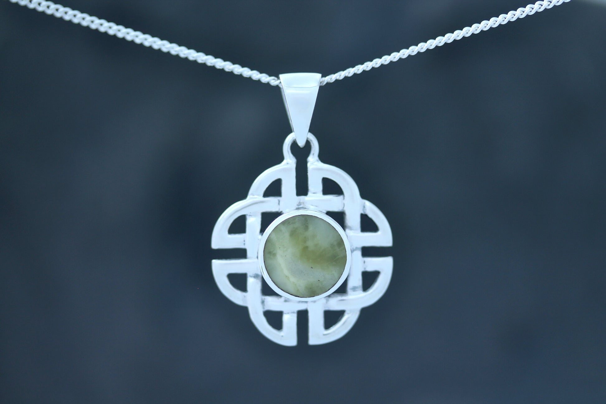 A Hallmarked 925 Sterling Silver Celtic Knot Pendant Set with Scottish Marble.