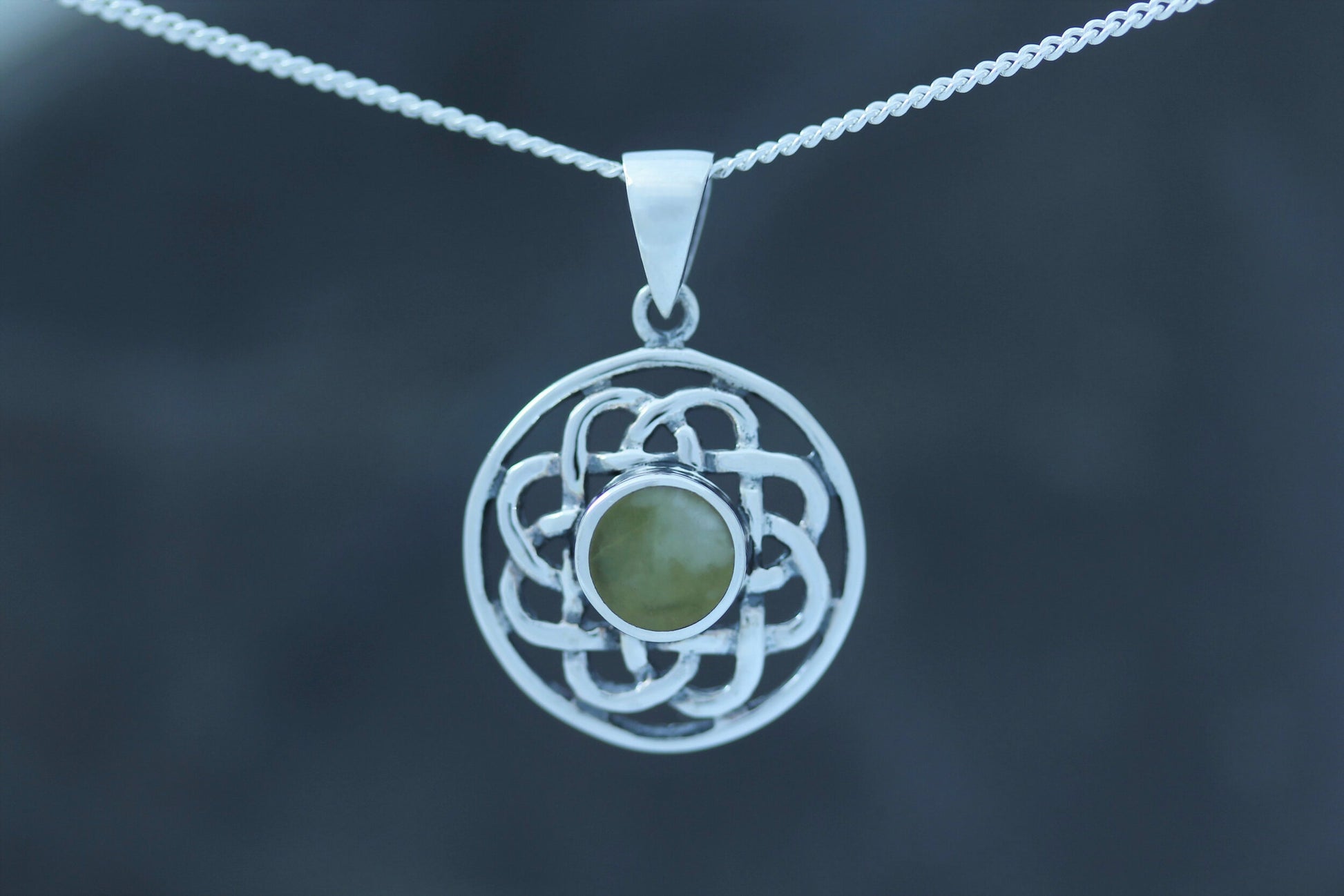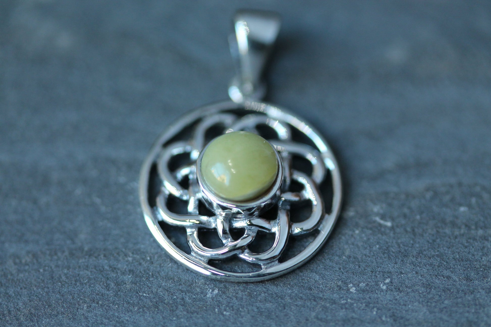 A Hallmarked 925 Sterling Silver Celtic Knot Pendant Set with Scottish Marble.