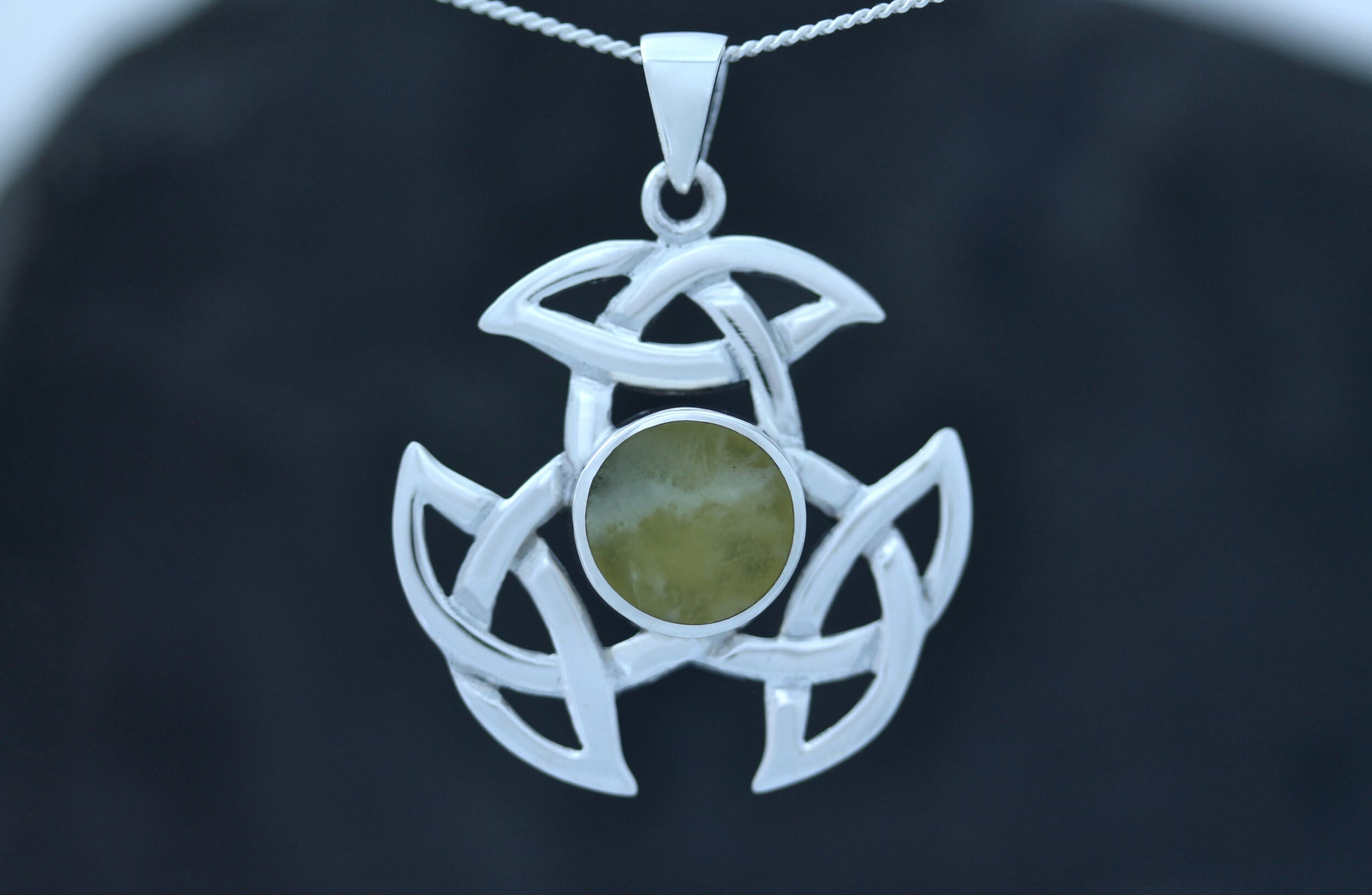 A Hallmarked 925 Sterling Silver Triple Trinity Knot Pendant Set with Scottish Marble.