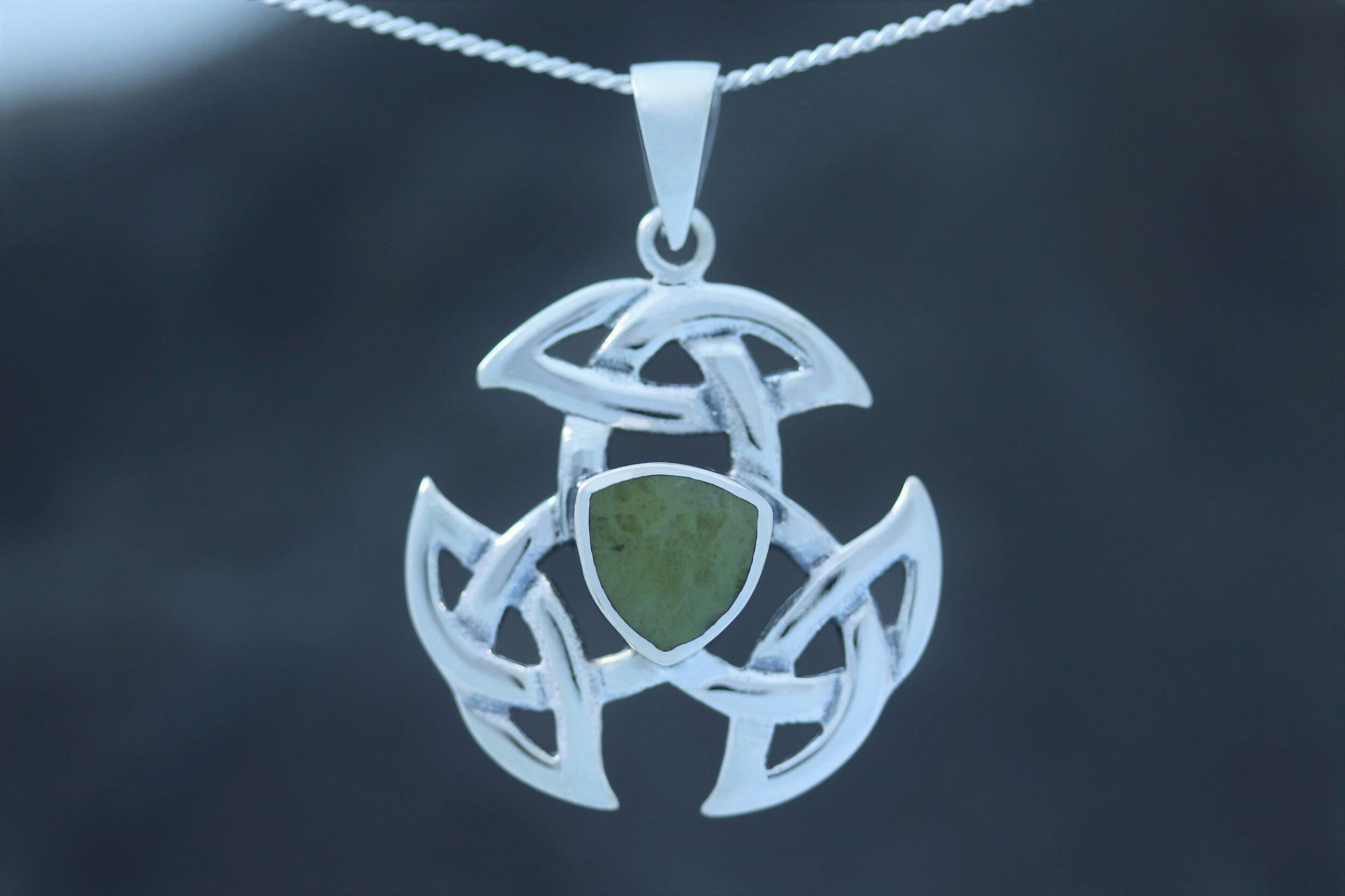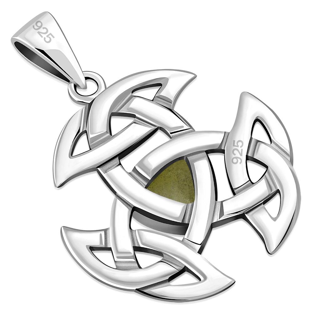 A Hallmarked 925 Sterling Silver Triple Trinity Knot Pendant Set with Scottish Marble.