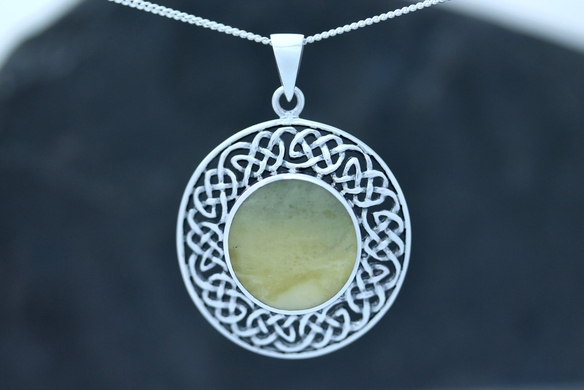 Celtic Wheel of Life Pendant with round Scottish Marble center set in hallmarked 925 Sterling Silver.
