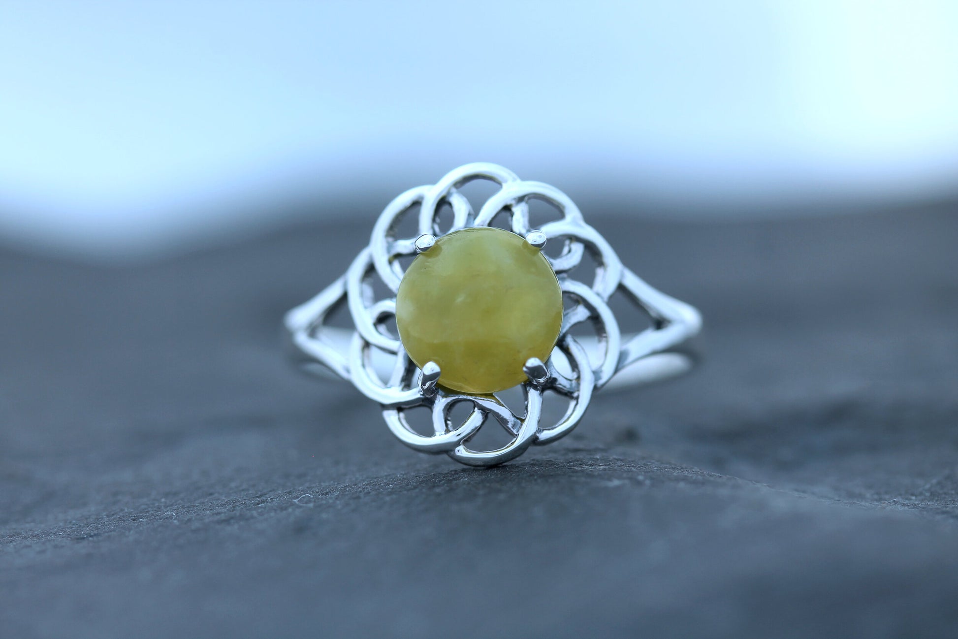 Celtic Knot Ring with Big Scottish Marble Cabochon set in hallmarked 925 Sterling Silver.