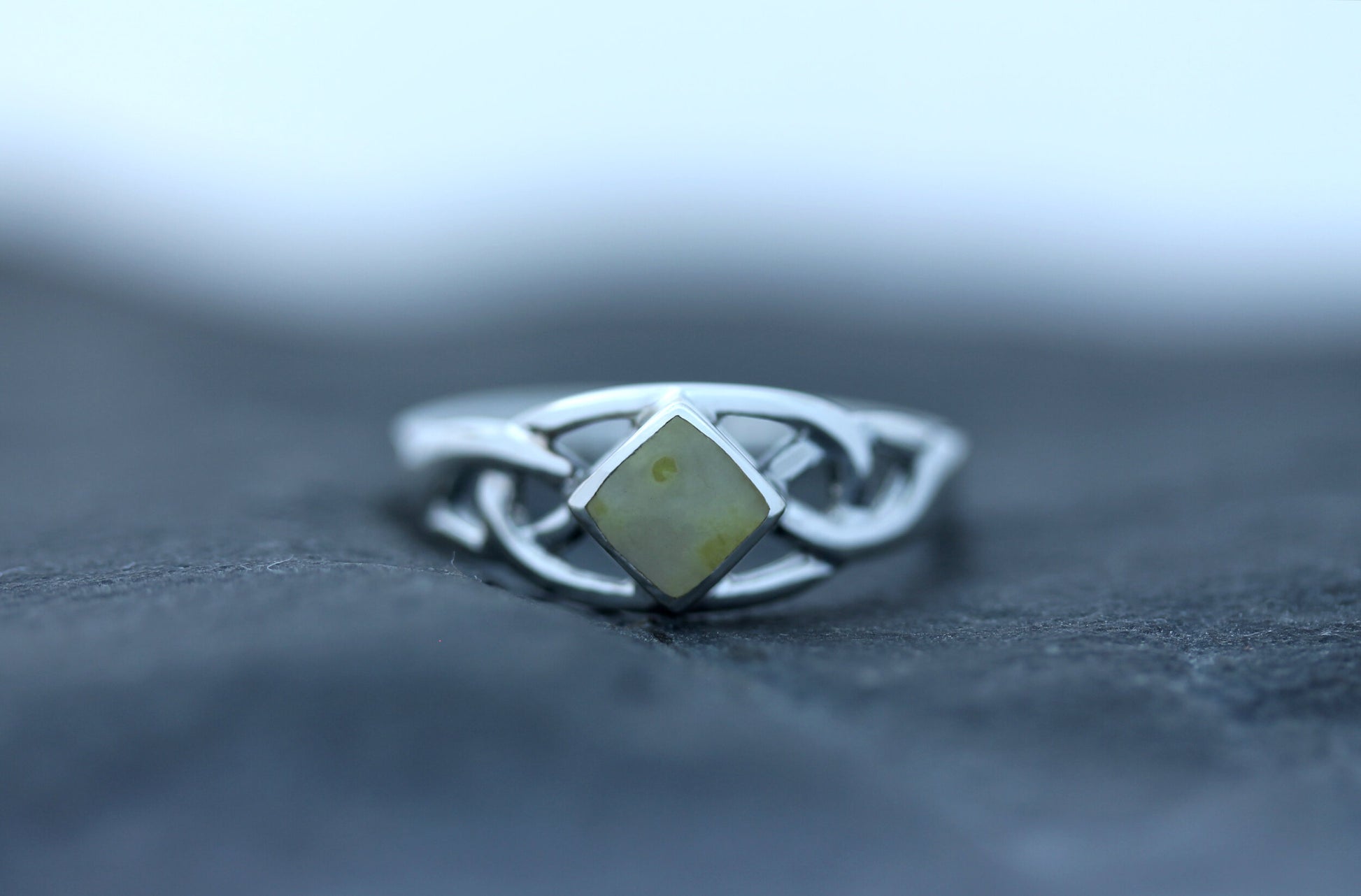 Celtic Knot ring with diamond shaped Scottish Marble set in hallmarked 925 Sterling Silver.