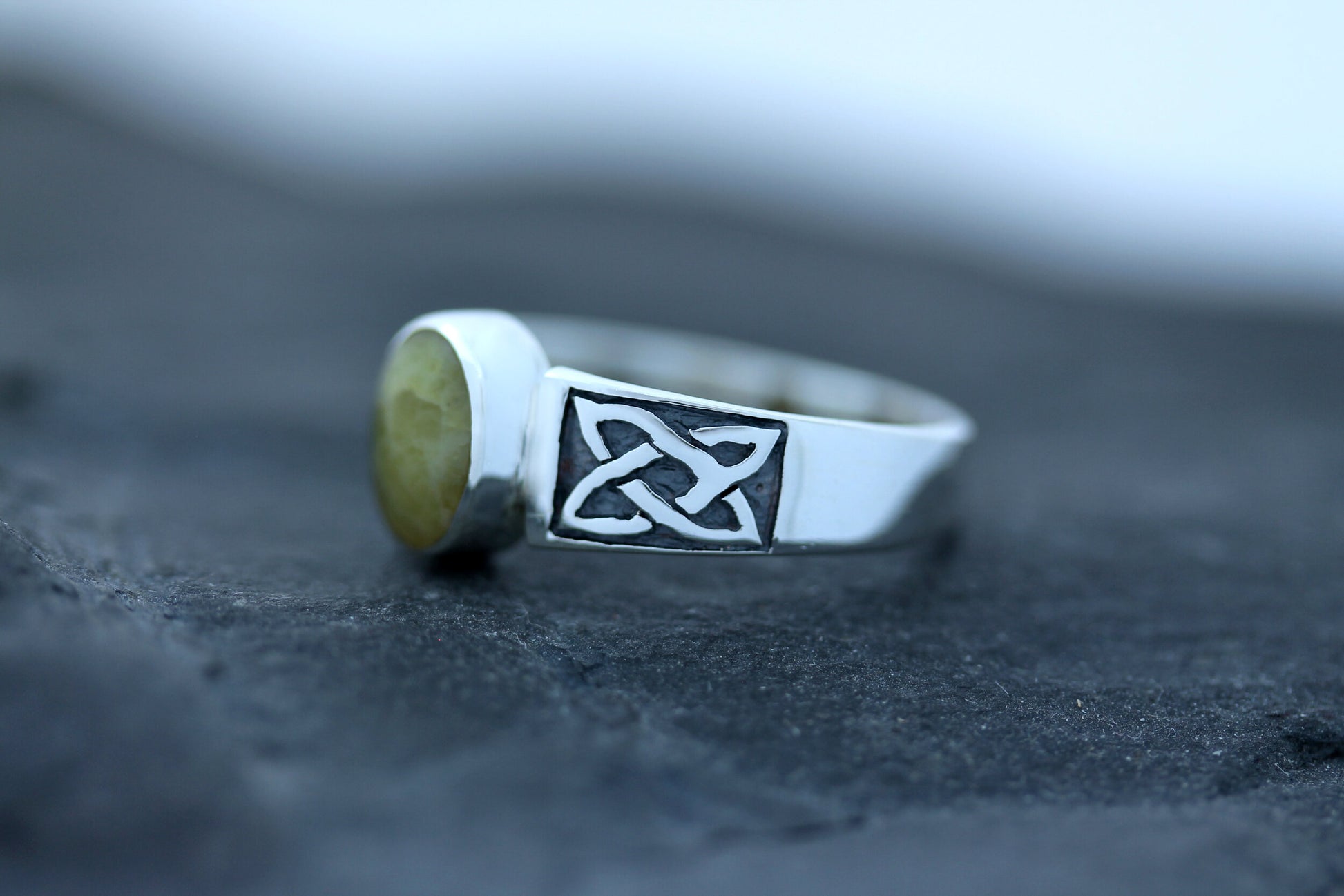 Celtic Knot Ring with oval Scottish Marble set in hallmarked 925 Sterling Silver.